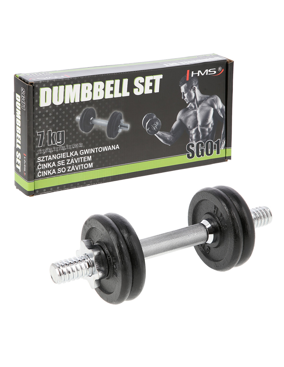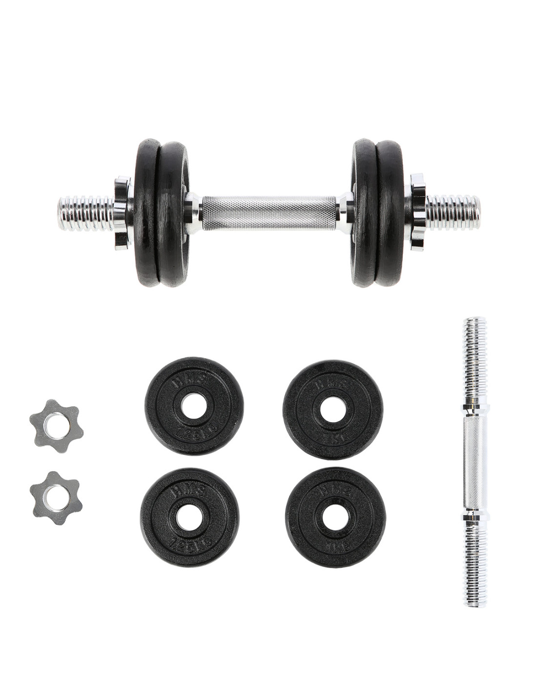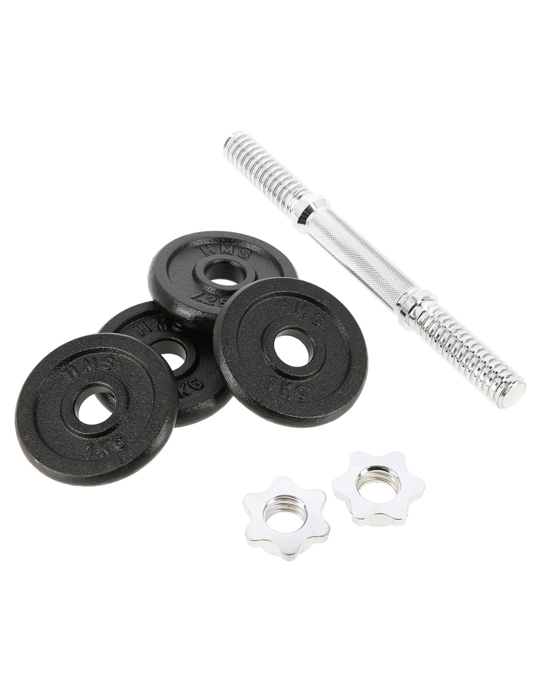 Die SG01 HMS Hantel aus Gusseisen gehört zu klassischen und unbedingten Elementen jedes Heim-Fitnessstudios. Im Set finden Sie: Kurzhantelstange, 2 Hantelscheiben mit dem Gewicht von 1 kg, 2 Hantelscheiben mit dem Gewicht von 1,25 kg und 2 Sternverschlüsse. Das erste Element aus diesem Set wurde aus vernickeltem Stahl und die Hantelscheiben wurden aus Gusseisen hergestellt.