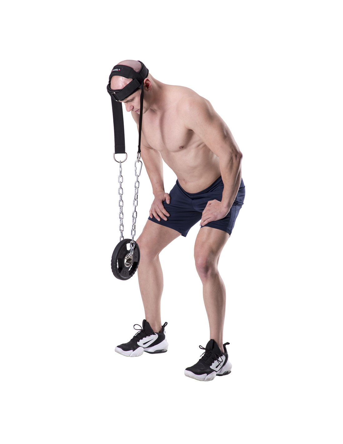Dieses Produkt wurde aus robustem und widerstandsfähigem Nylon sowie Stahl hergestellt. Das System der auf dem Kopf angebrachten Riemen wurde so geplant, dass den Komfort und die Sicherheit einem Nutzer gewährleistet wird. Dadurch rutscht der Nackentrainer nicht während der Trainings ab. Der Nutzer hat volle Kontrolle über die Belastung, die er bei Übungen nutzt. Die spezielle Form des Nackentrainers und seine präzise Verarbeitung ermöglichen es Ihnen, unnötige Verletzungen und Schürfwunden zu verhindern.