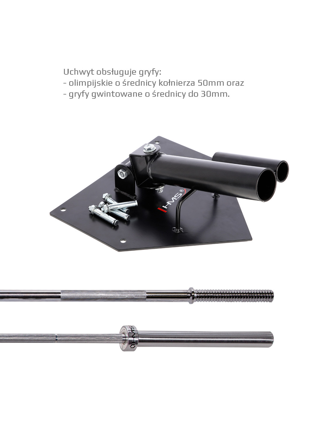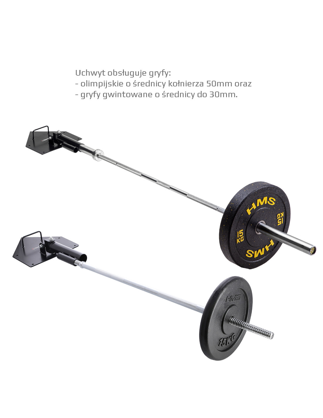 Die Halterung eignet sich für eine olympische Langhantelstange mit dem Durchmesser des Ärmels von 50 mm oder auch für eine Langhantelstange mit dem Durchmesser von 28 mm.