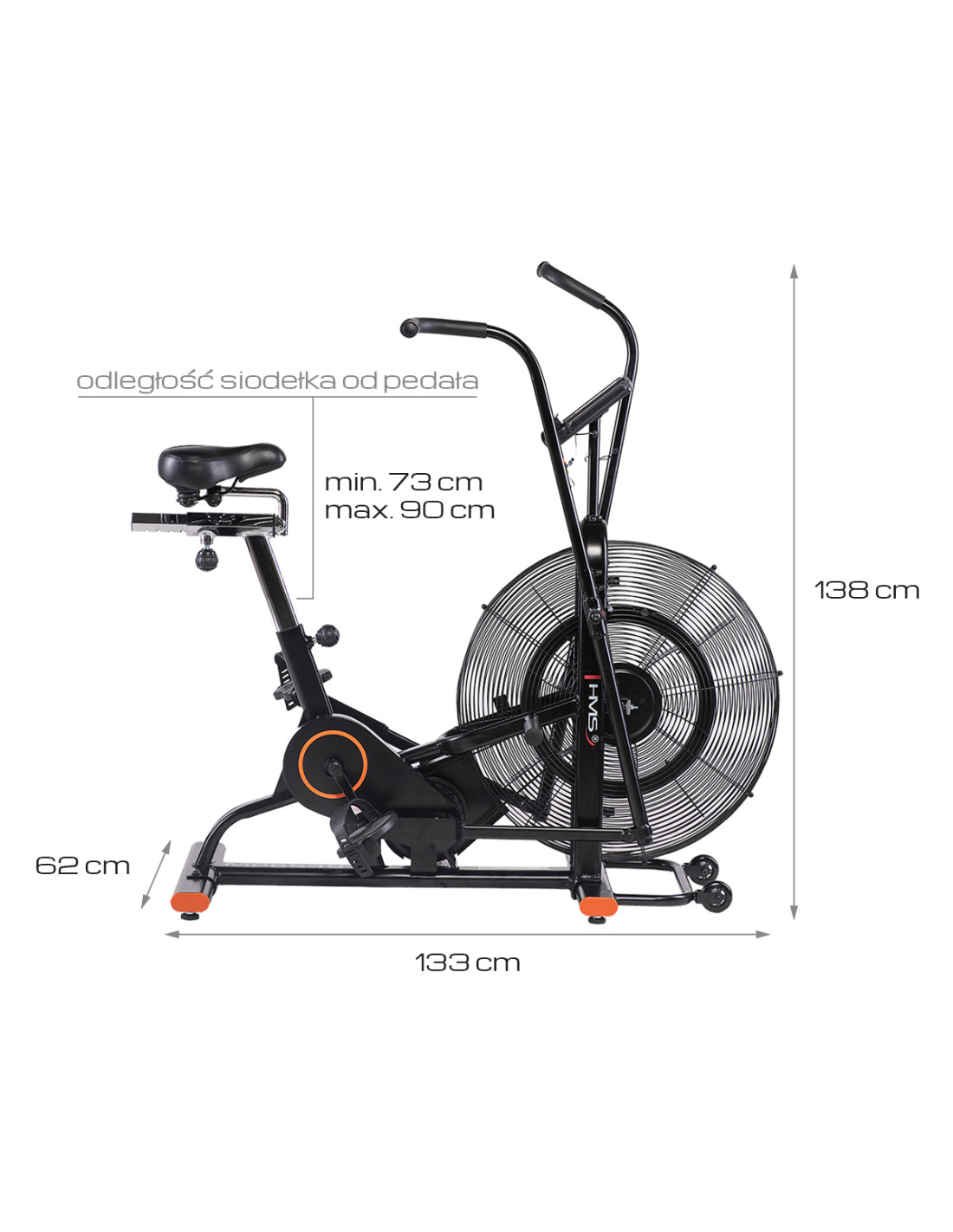 - Mindestabstand zwischen Sattel und Pedal: 73 cm