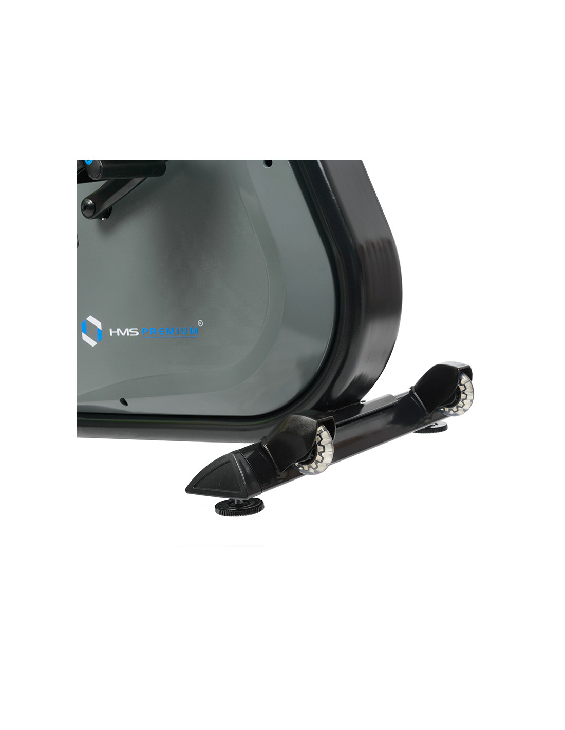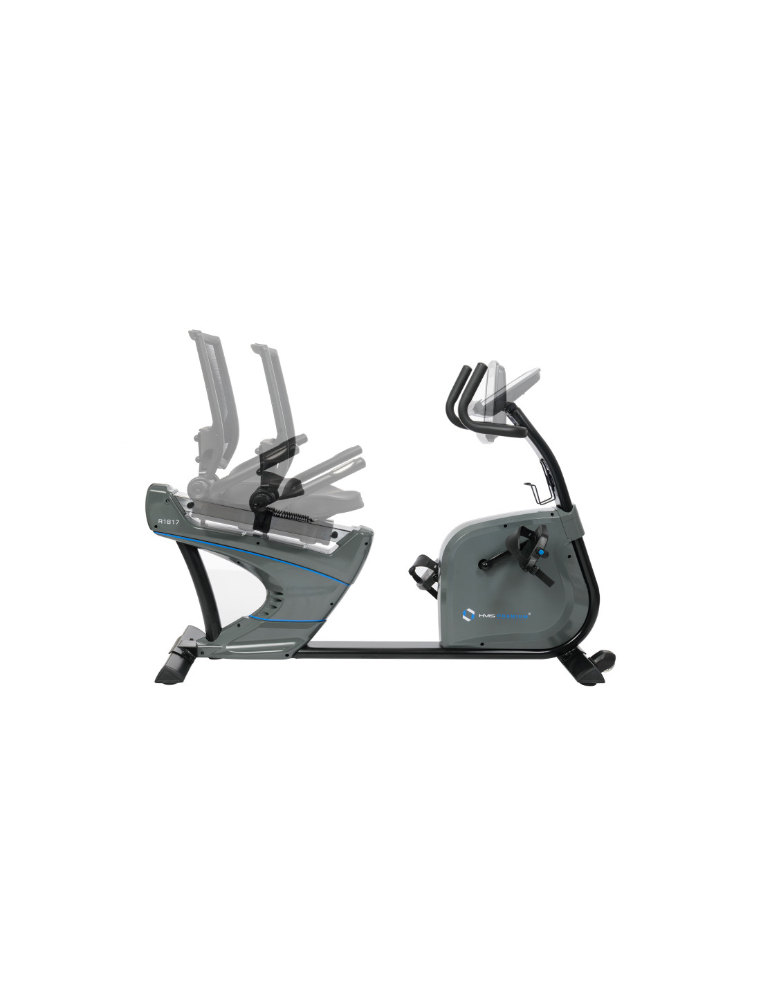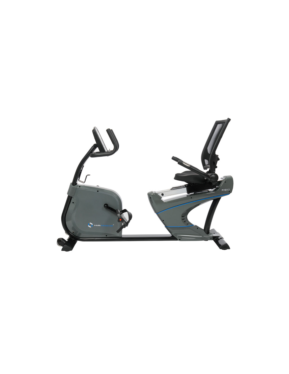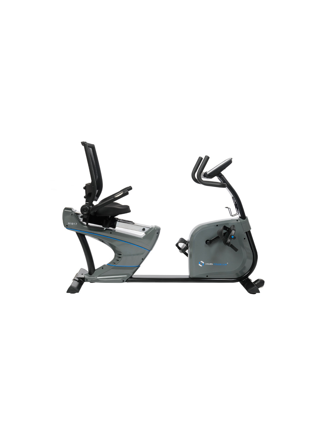 Der R1817 HMS Liegeheimtrainer ist ein hochwertiger Liegeheimtrainer der Semi-Commercial-Klasse. Solche Norme bedeutet, dass dieses Gerät für kleine Fitnessclubs, SPA-Salons sowie Wellnesszentren geeignet ist. Der Liegeheimtrainer ist mit einem Sattel ausgestattet, der eine stufenlose Einstellung im Bereich von 28 cm ermöglicht. Ein Nutzer kann die Rückenlehne auch frei einstellen. Der praktische und moderne Computer zeigt alle wichtigsten Trainingsparameter an. Ein Nutzer kann auch den Neigungswinkel an seine individuellen Bedürfnisse anpassen. Dem Nutzer stehen 7 Hauptfunktionen zur Verfügung, das sind: Time (Trainingszeit), Distance (die zurückgelegte Strecke), Calories (verbrannte Kalorien), Pulse (Puls), Watt (Leistung), Speed (Geschwinidgkeit) und RPM (Umdrehungen pro Minute). Der R1817 HMS Liegeheimtrainer bietet Ihnen auch 12 Grundtrainingsprogramme (inkl. 19 Programme). Ein Nutzer hat die Möglichkeit, die folgenden Funktionen zu nutzen: H.R.C, Body Fat (Messung des verbrannten Körperfetts), Recovery (Pulsmessung). Es gibt auch die Funktion, ein eigenes Benutzerprofil zu erstellen! Mit dem magnetischen Widerstandssystem ist Ihr Training leise und gleichzeitig stört es niemanden in Ihrer Umgebung. Die elektronische Lastverstellung ermöglicht es Ihnen, die Einstellungen zu ändern, ohne das Training abzubrechen. Das Gerät verfügt über die rutschfesten Pedale, die mit den speziellen Riemen zur Stabilisierung der Füße ausgestattet sind. Mit dem Ziel, maximale Sicherheit zu gewährleisten, sind alle Griffe mit einem speziellen rutschfesten Stoff bedeckt.