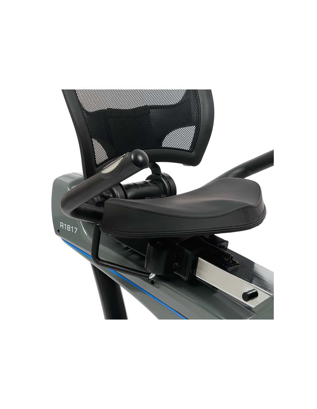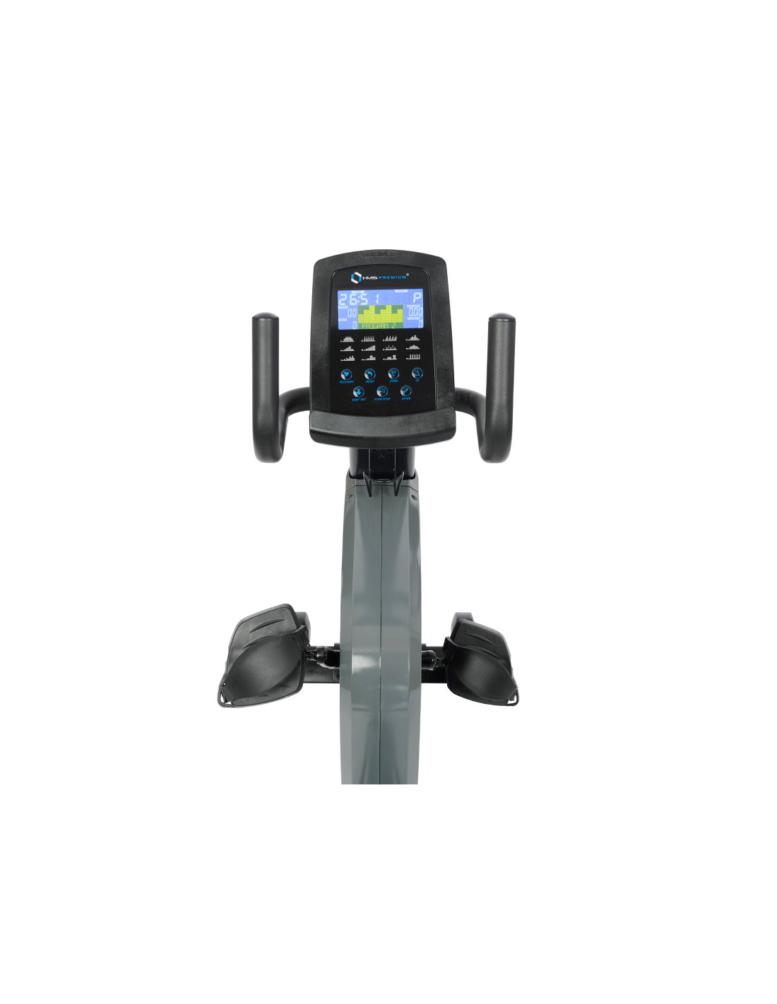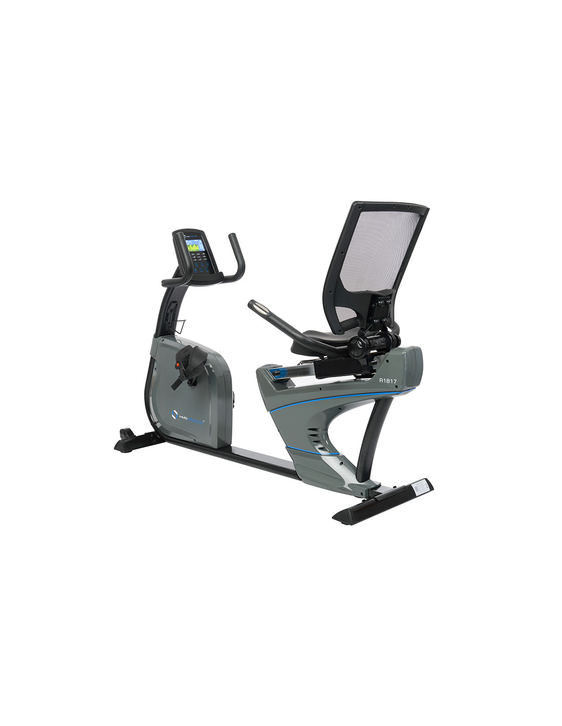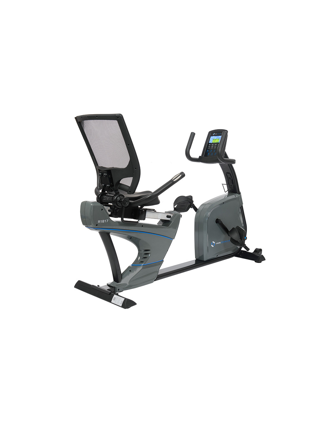 Der R1817 HMS Liegeheimtrainer ist ein hochwertiger Liegeheimtrainer der Semi-Commercial-Klasse. Solche Norme bedeutet, dass dieses Gerät für kleine Fitnessclubs, SPA-Salons sowie Wellnesszentren geeignet ist. Der Liegeheimtrainer ist mit einem Sattel ausgestattet, der eine stufenlose Einstellung im Bereich von 28 cm ermöglicht. Ein Nutzer kann die Rückenlehne auch frei einstellen. Der praktische und moderne Computer zeigt alle wichtigsten Trainingsparameter an. Ein Nutzer kann auch den Neigungswinkel an seine individuellen Bedürfnisse anpassen. Dem Nutzer stehen 7 Hauptfunktionen zur Verfügung, das sind: Time (Trainingszeit), Distance (die zurückgelegte Strecke), Calories (verbrannte Kalorien), Pulse (Puls), Watt (Leistung), Speed (Geschwinidgkeit) und RPM (Umdrehungen pro Minute). Der R1817 HMS Liegeheimtrainer bietet Ihnen auch 12 Grundtrainingsprogramme (inkl. 19 Programme). Ein Nutzer hat die Möglichkeit, die folgenden Funktionen zu nutzen: H.R.C, Body Fat (Messung des verbrannten Körperfetts), Recovery (Pulsmessung). Es gibt auch die Funktion, ein eigenes Benutzerprofil zu erstellen! Mit dem magnetischen Widerstandssystem ist Ihr Training leise und gleichzeitig stört es niemanden in Ihrer Umgebung. Die elektronische Lastverstellung ermöglicht es Ihnen, die Einstellungen zu ändern, ohne das Training abzubrechen. Das Gerät verfügt über die rutschfesten Pedale, die mit den speziellen Riemen zur Stabilisierung der Füße ausgestattet sind. Mit dem Ziel, maximale Sicherheit zu gewährleisten, sind alle Griffe mit einem speziellen rutschfesten Stoff bedeckt.