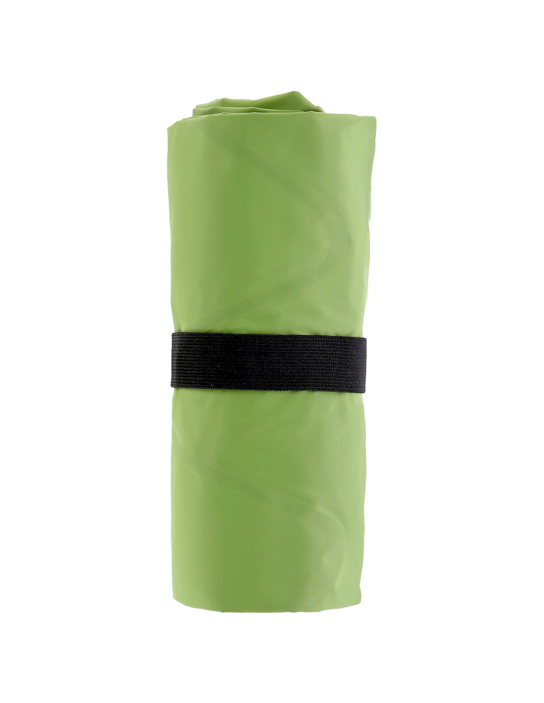 Die zusammengerollte Matte ist sehr platzsparend und die Methode des Zusammenrollens ist sehr einfach. Schrauben Sie das Ventil ab und rollen Sie die Matte von oben beginnend ein. Sie brauchen keine Angst zu haben, dass sie sich selbst entfaltet, denn sie hat einen Riemen mit Verschlüssen. Zusätzlich ist eine praktische Schutzhülle im Set enthalten, in die sich unsere Matte packen lässt. Dies wird den Transport wesentlich erleichtern und die Matte zusätzlich vor Beschädigungen schützen. Das Ganze, in Verbindung mit dem Gewicht der Matte, das nur 0,5 kg beträgt, ermöglicht es Ihnen, sie auf jeder Reise dabei zu haben.