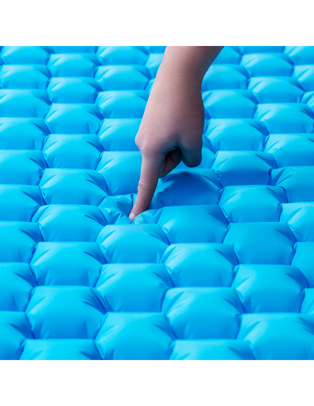 Die zusammengerollte Matte ist sehr platzsparend und die Methode des Zusammenrollens ist sehr einfach. Schrauben Sie das Ventil ab und rollen Sie die Matte von oben beginnend ein. Sie brauchen keine Angst zu haben, dass sie sich selbst entfaltet, denn sie hat einen Riemen mit Verschlüssen. Zusätzlich ist eine praktische Schutzhülle im Set enthalten, in die sich unsere Matte packen lässt. Dies wird den Transport wesentlich erleichtern und die Matte zusätzlich vor Beschädigungen schützen. Das Ganze, in Verbindung mit dem Gewicht der Matte, das nur 0,5 kg beträgt, ermöglicht es Ihnen, sie auf jeder Reise dabei zu haben.