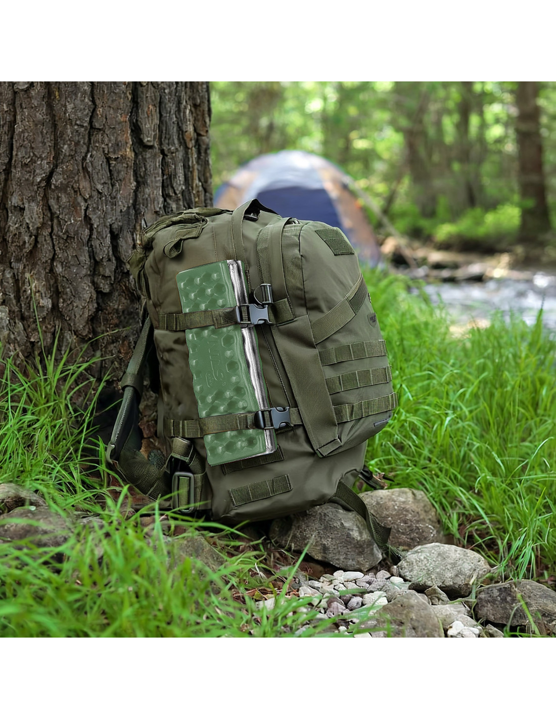 Die Unterseite der Matte ist mit einer Aluminiumfolie versehen, die Körperwärme effektiv reflektiert und vor Kälte und Feuchtigkeit schützt. So können Sie bequem auf Steinen, feuchtem Gras oder kühlem Boden sitzen, ohne sich um Unbehagen sorgen zu müssen.