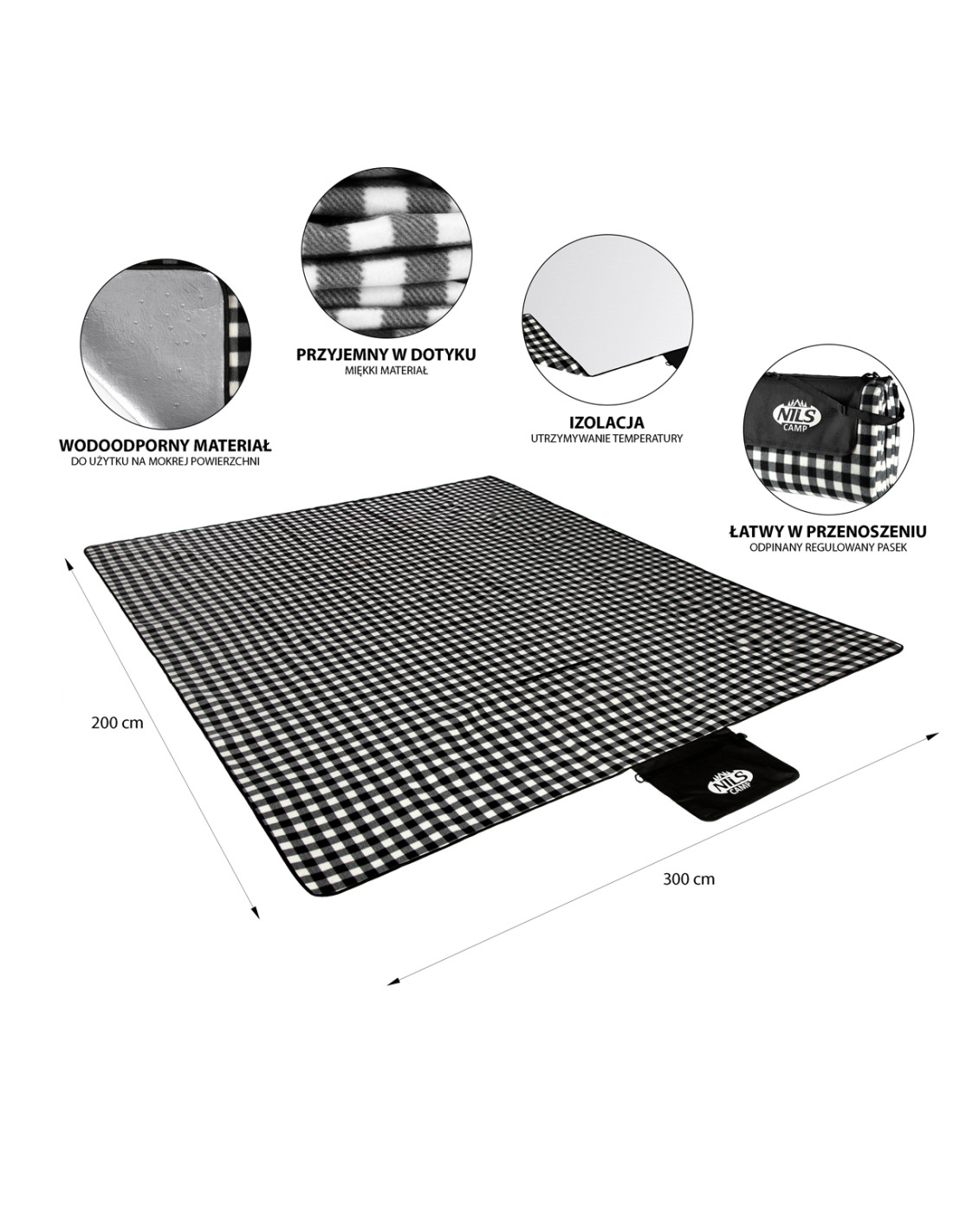 PICKNICKDECKE WEIß-SCHWARZ 300x200 CM PE + ALU NILS CAMP