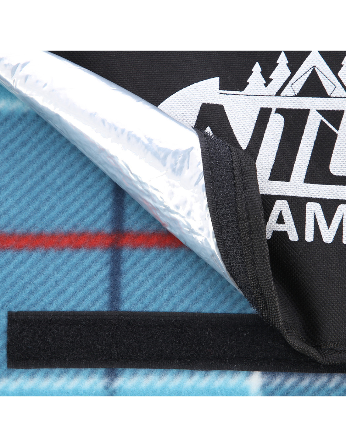Die Decke besteht aus zwei Materialschichten. Die obere Schicht ist hochwertiges Fleece, das sich durch die Weichheit und den Schutz vor dem kalten Boden auszeichnet. Dies verbessert selbstverständlich den Benutzungskomfort. Auf dem unteren Teil befindet sich eine Schicht aus Aluminium, die wasserdicht ist und es ermöglicht, die Decke z.B. auf feuchtem Sand oder auf dem mit Tau bedeckten Gras zu verwenden. Diese beiden Stoffe bilden eine ausgezeichnete Wärmedämmschicht.