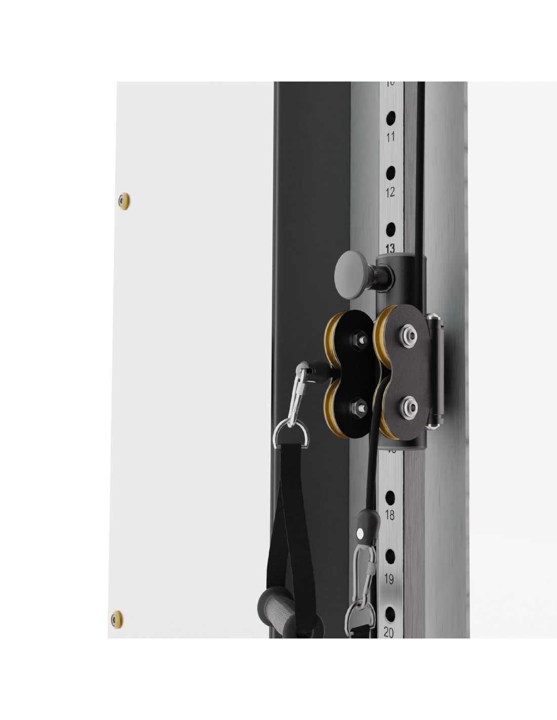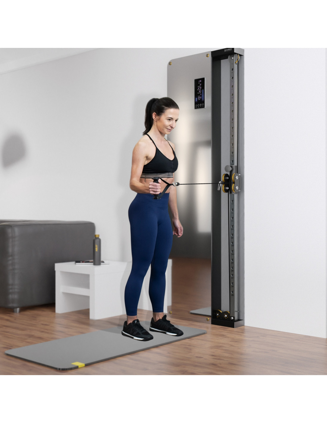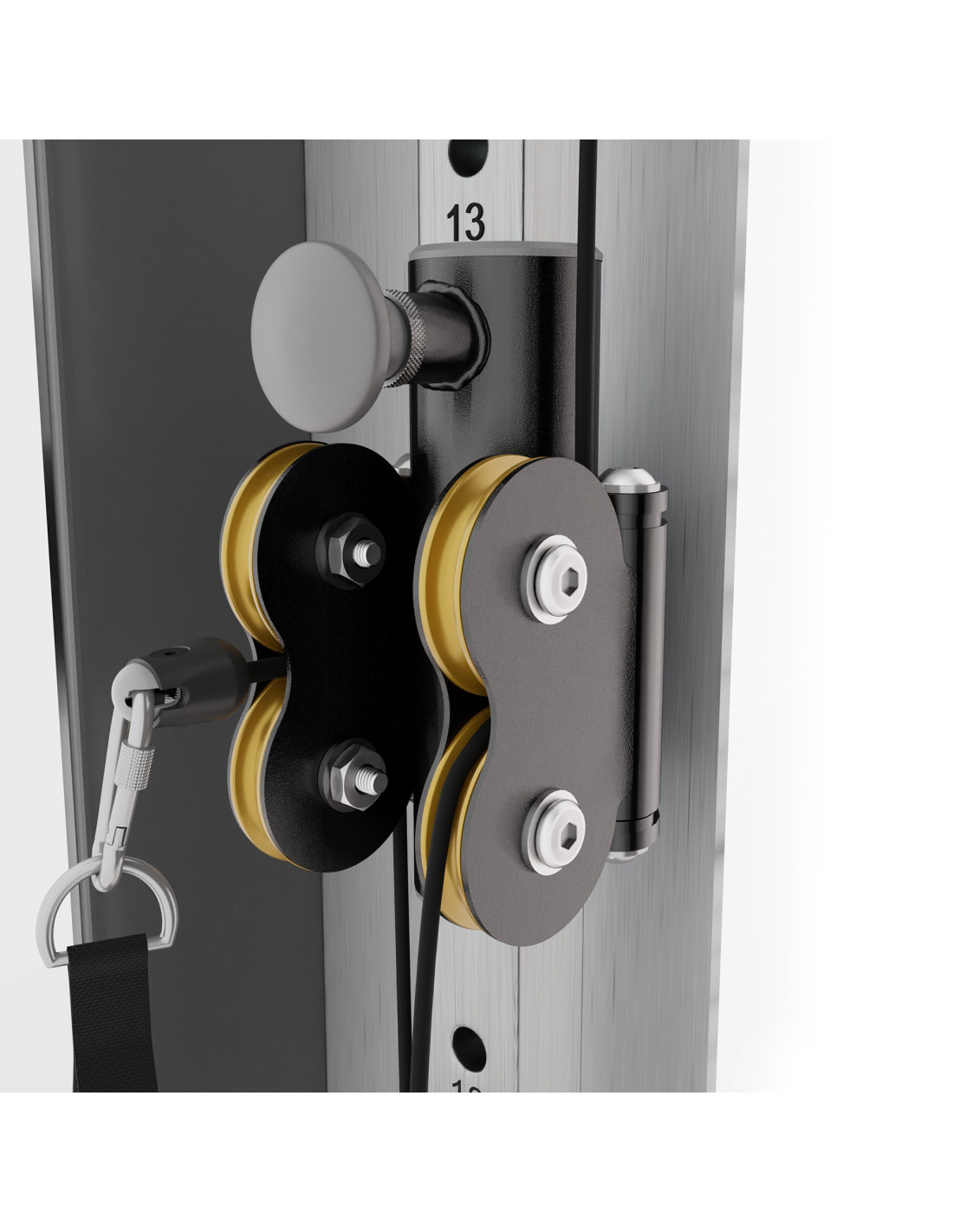 BSP301 verfügt über einen 10-stufigen pneumatischen Belastungswechsel von 5 bis 30 kg (in Abstufung von 2,5 kg), der Ihren Komfort erhöht und Ihr Training verbessert. Sie können die Belastung ganz einfach über das intelligente Touch-Display ändern. Sie können auch die Höhe des Stahlseils in bis zu 28 Stufen einstellen! Die Griffe sind an Karabinerhaken befestigt, so dass Sie sie wechseln und an Ihre Bedürfnisse anpassen können. Doppelte Seilspannung bedeutet doppelten Widerstand!