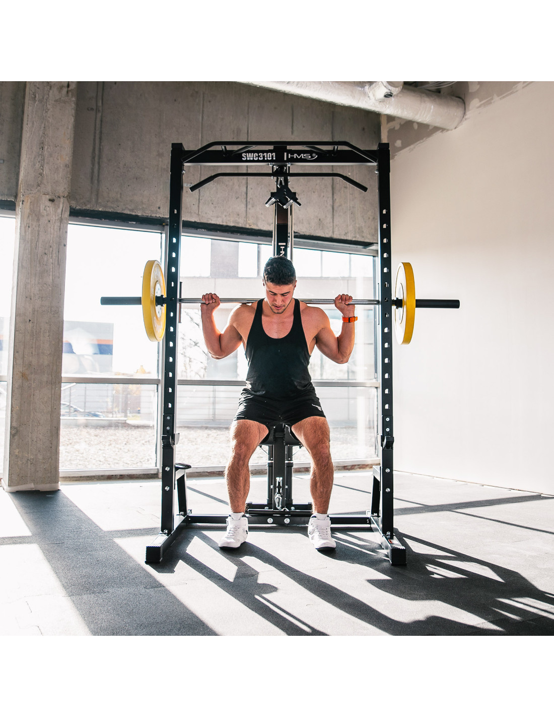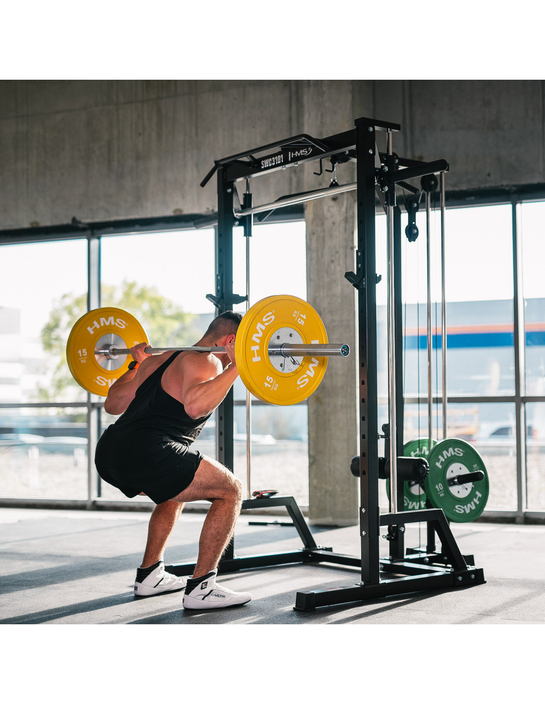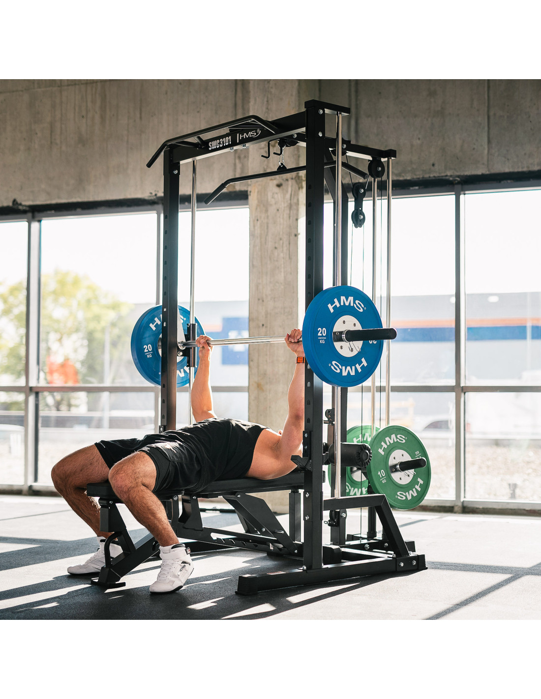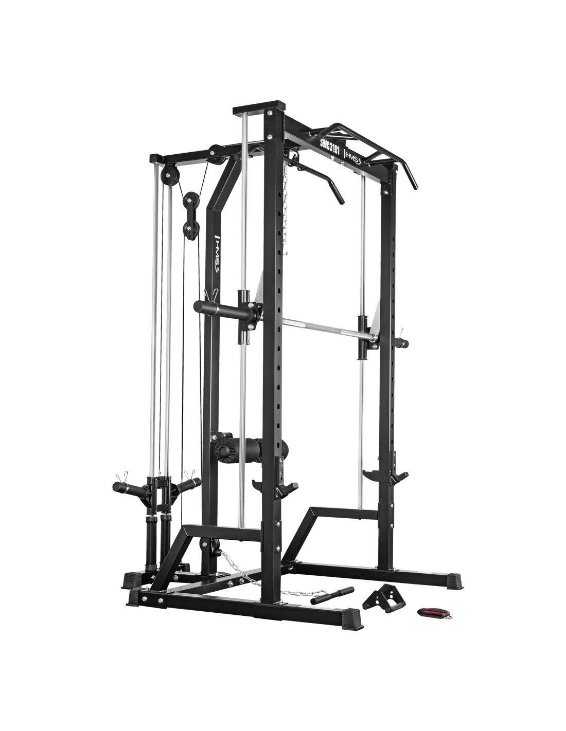 Durch die Kombination aus Smith-Maschine, Rack und 1:1-Kabelzugsystem stellt der SWC3101 von HMS Fitness eine vollständige Plattform für Kraft- und Functional-Training dar. Eine Investition in Sicherheit, Langlebigkeit und maximale Vielseitigkeit.