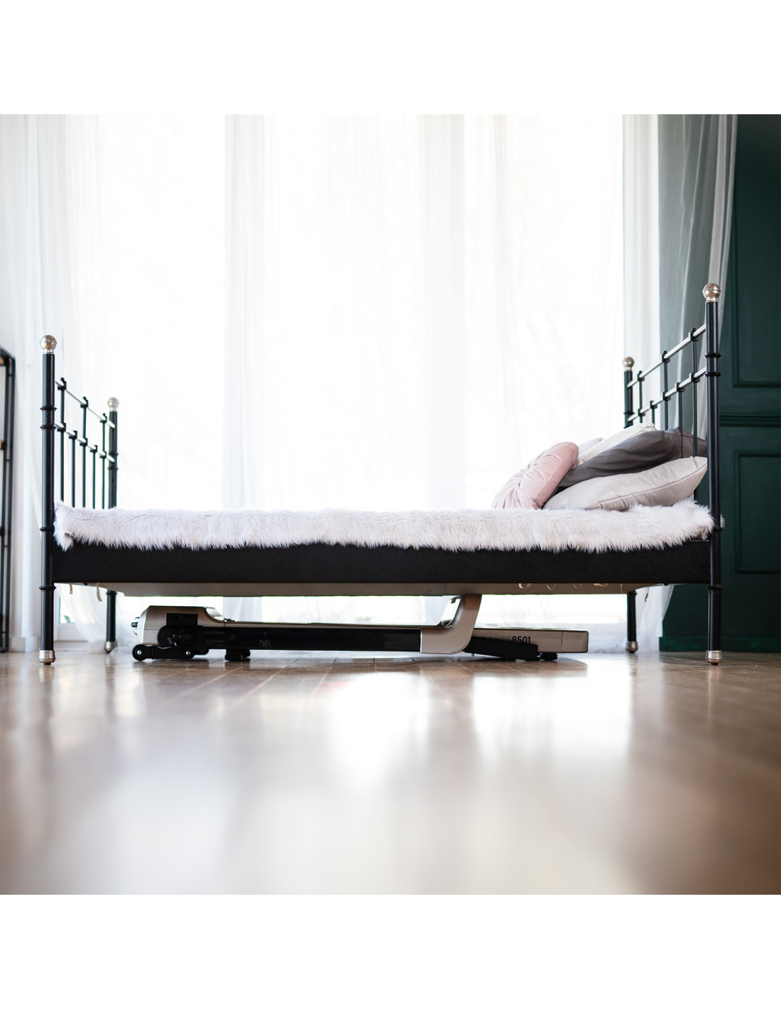 Der BE8501i wurde unter Berücksichtigung der häuslichen Bedingungen so konzipiert, dass er den Platz maximiert. Die Möglichkeit, ihn zusammenzuklappen und problemlos unter dem Bett, im Stehen oder in anderen engen Räumen zu verstauen, erleichtert in Kombination mit Transporträdern die Raumverwaltung und den Transport der Ausrüstung nach Bedarf.