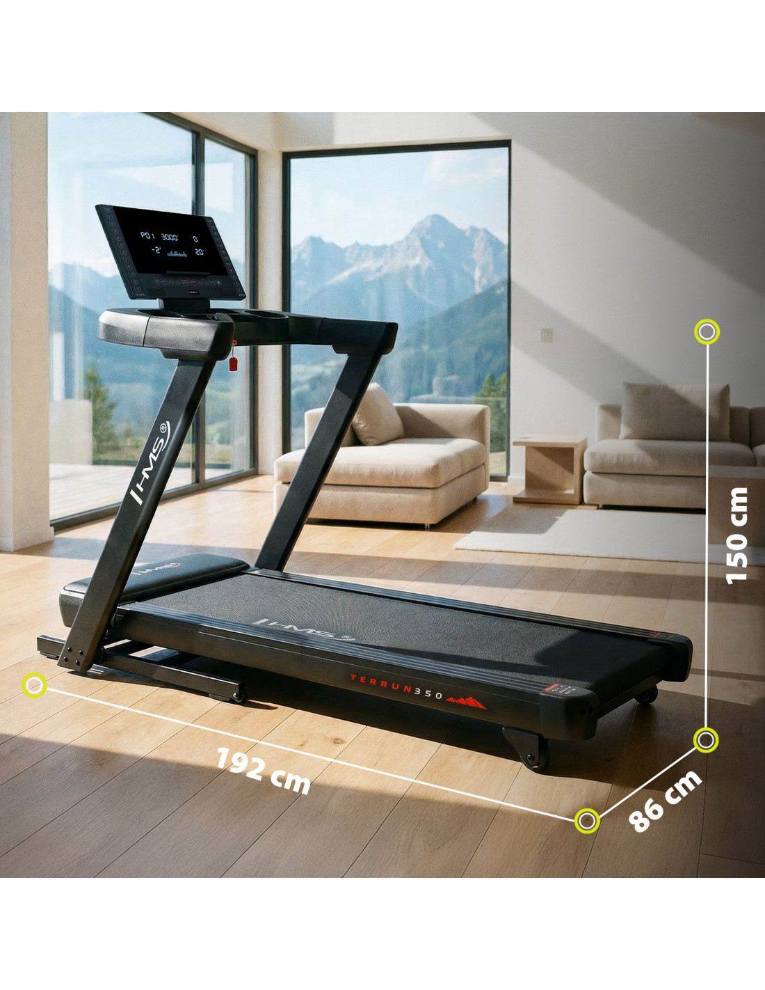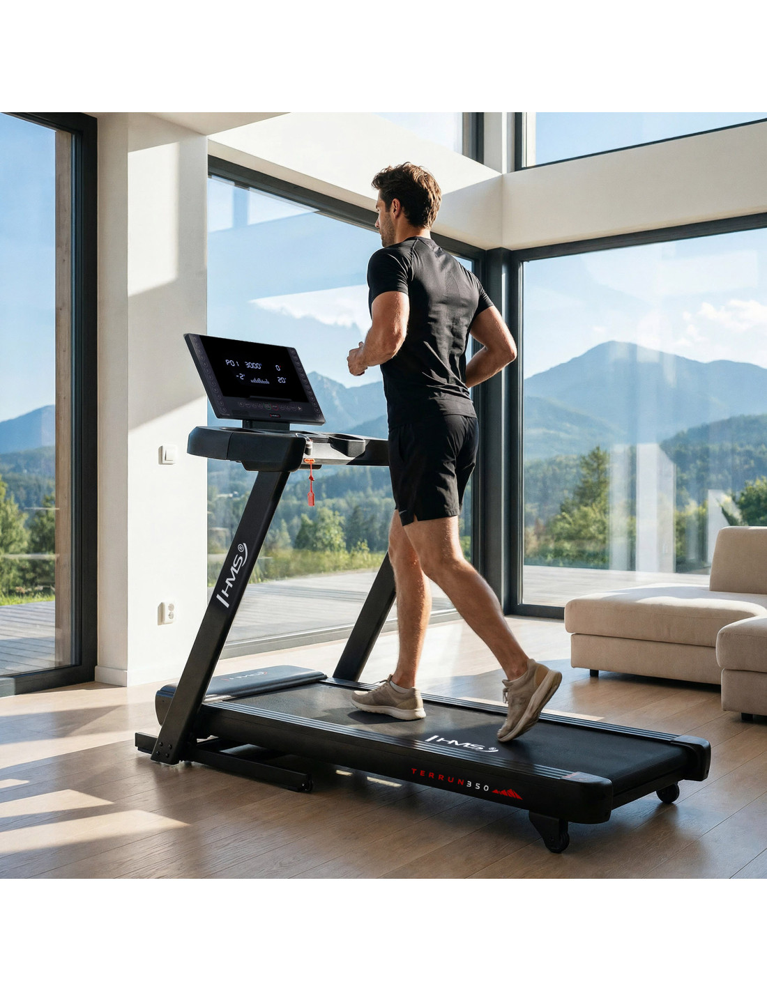 Dank kompakter Bauweise, moderner Technologien und umfangreicher Ausstattung ist das elektrische Laufband TERRUN350 die perfekte Wahl für alle, die ein funktionales Laufband für zu Hause suchen – mit Komfort, Sicherheit und modernem interaktivem Training.