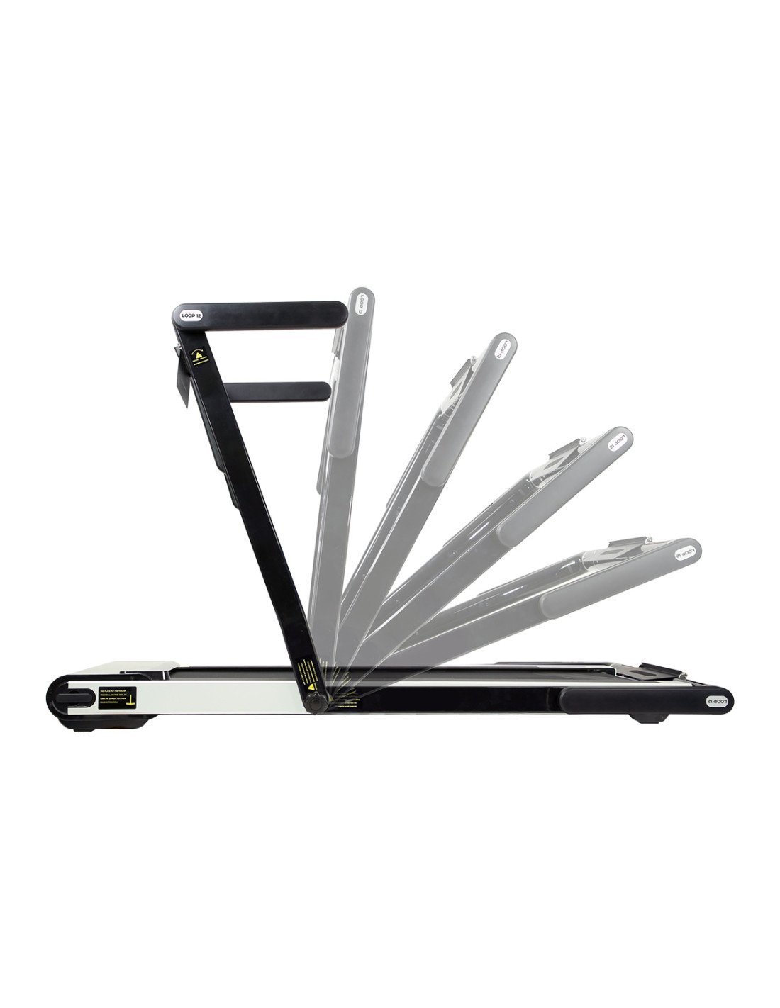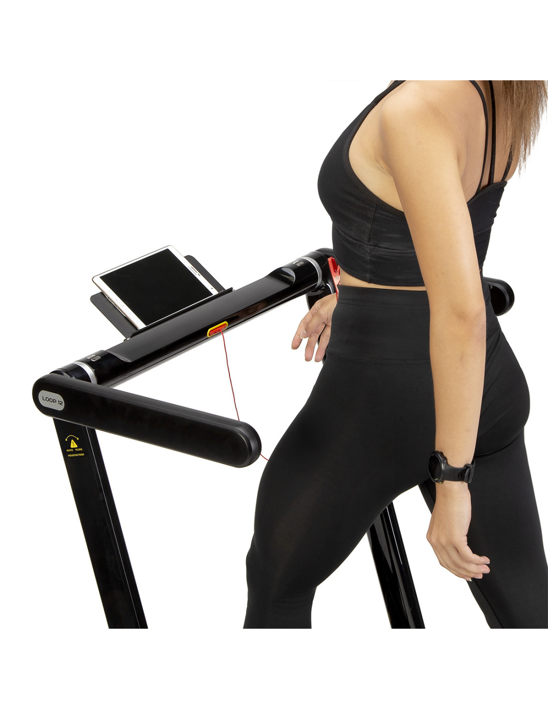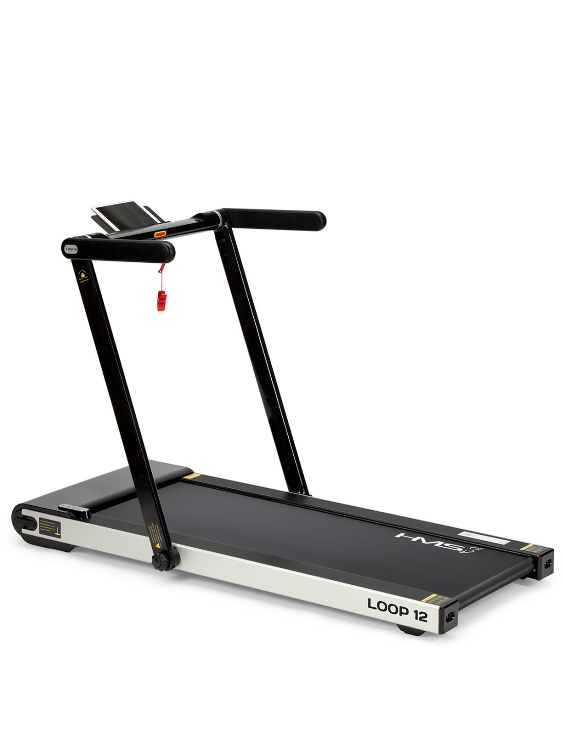 Ein weiterer Vorteil ist die Größe dieses Laufbands. Mit dem klappbaren Handlauf ist es platzsparend. Die Position des Laufbands LOOP12 lässt sich sowohl vertikal als horizontal ändern. Dies wird Ihnen keine Schwierigkeiten bereiten, weil unser Produkt mit den Transporträdern ausgestattet ist.