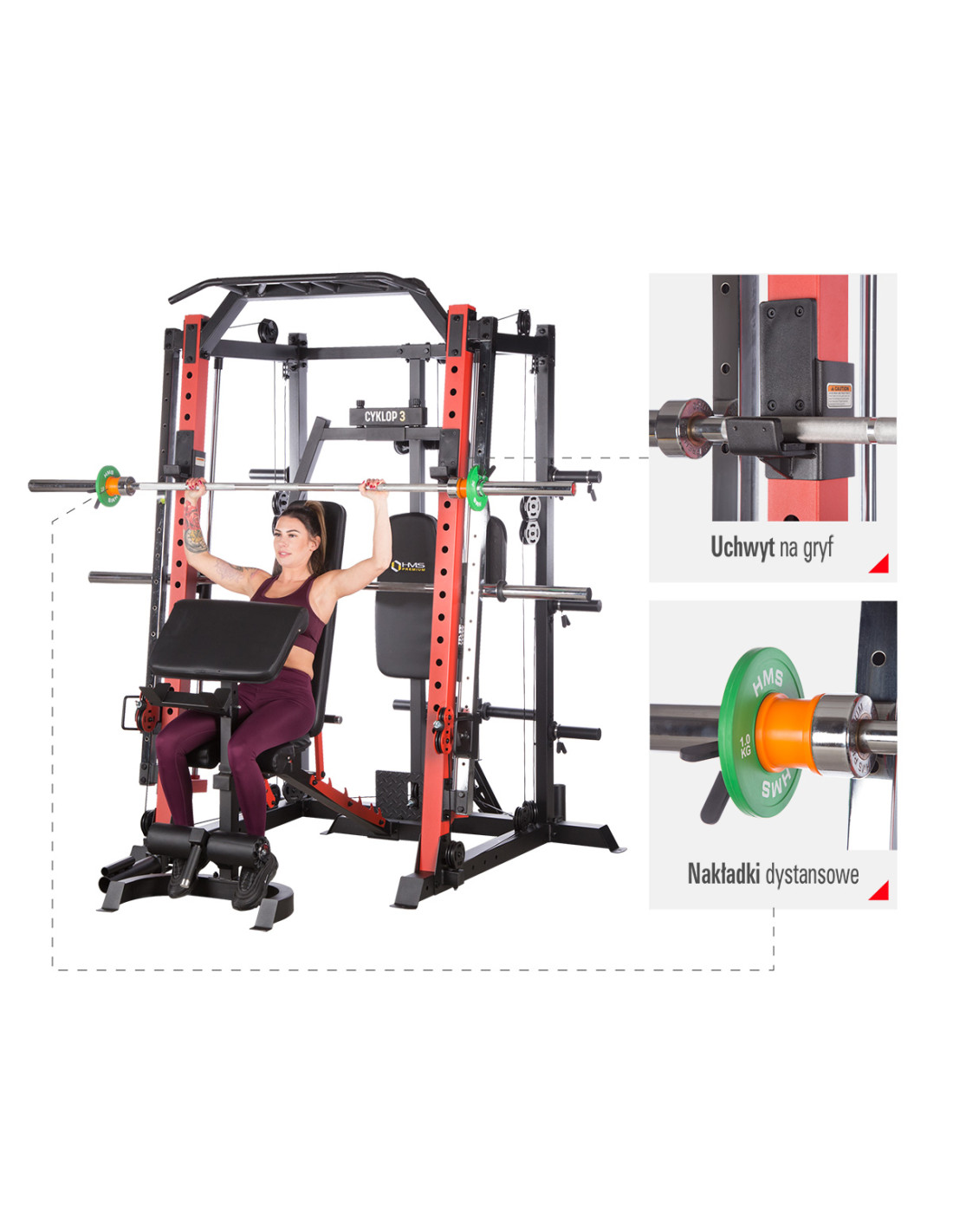 CYKLOP 3 HMS ist eine Kraftstation der Klasse Semi Commercial. Sie ist ideal für kleine Fitnessclubs sowie für den Heimgebrauch.