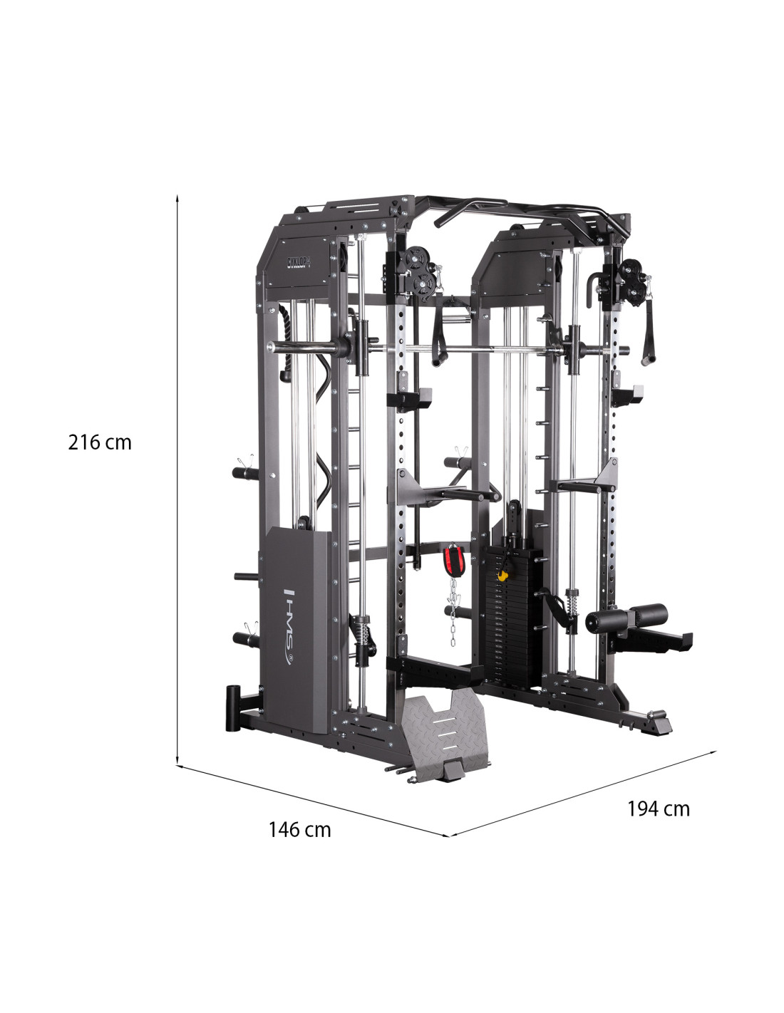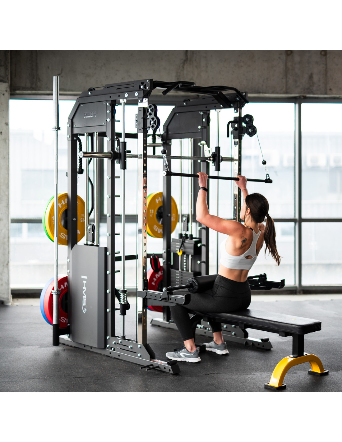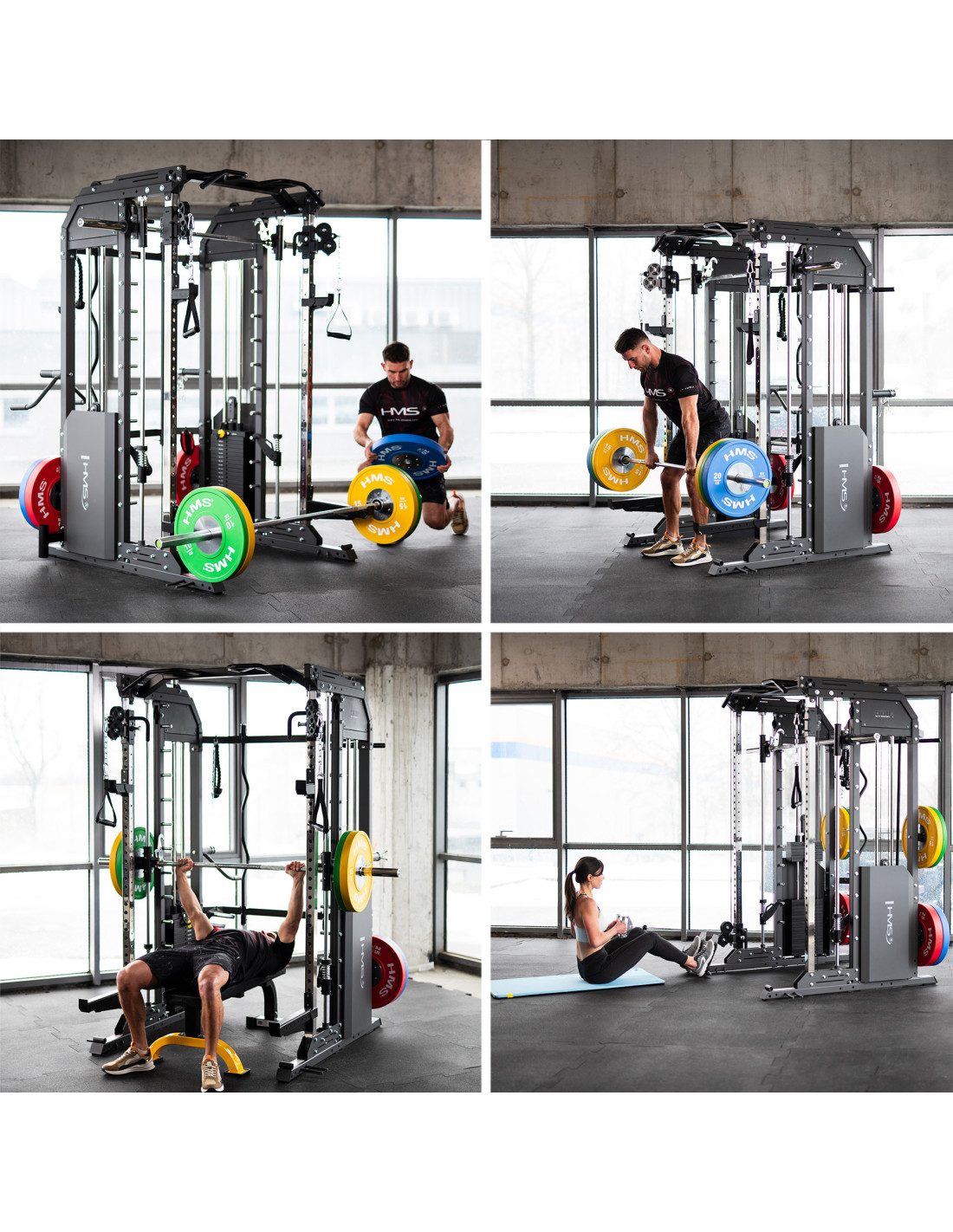 Cyklop 4 ist ein Produkt der Marke HMS, die Vorteile einer Multipresse (Smith Machine) und einer Kraftstation verbindet. Das ist ein Produkt, das Übungen für alle Körperpartien unter komfortablen Bedienmöglichkeiten ermöglicht. Cyklop 4 ist ideal für Personen, die ihre Fitness, Körperform, Muskelmasse oder Ausdauer verbessern wollen.