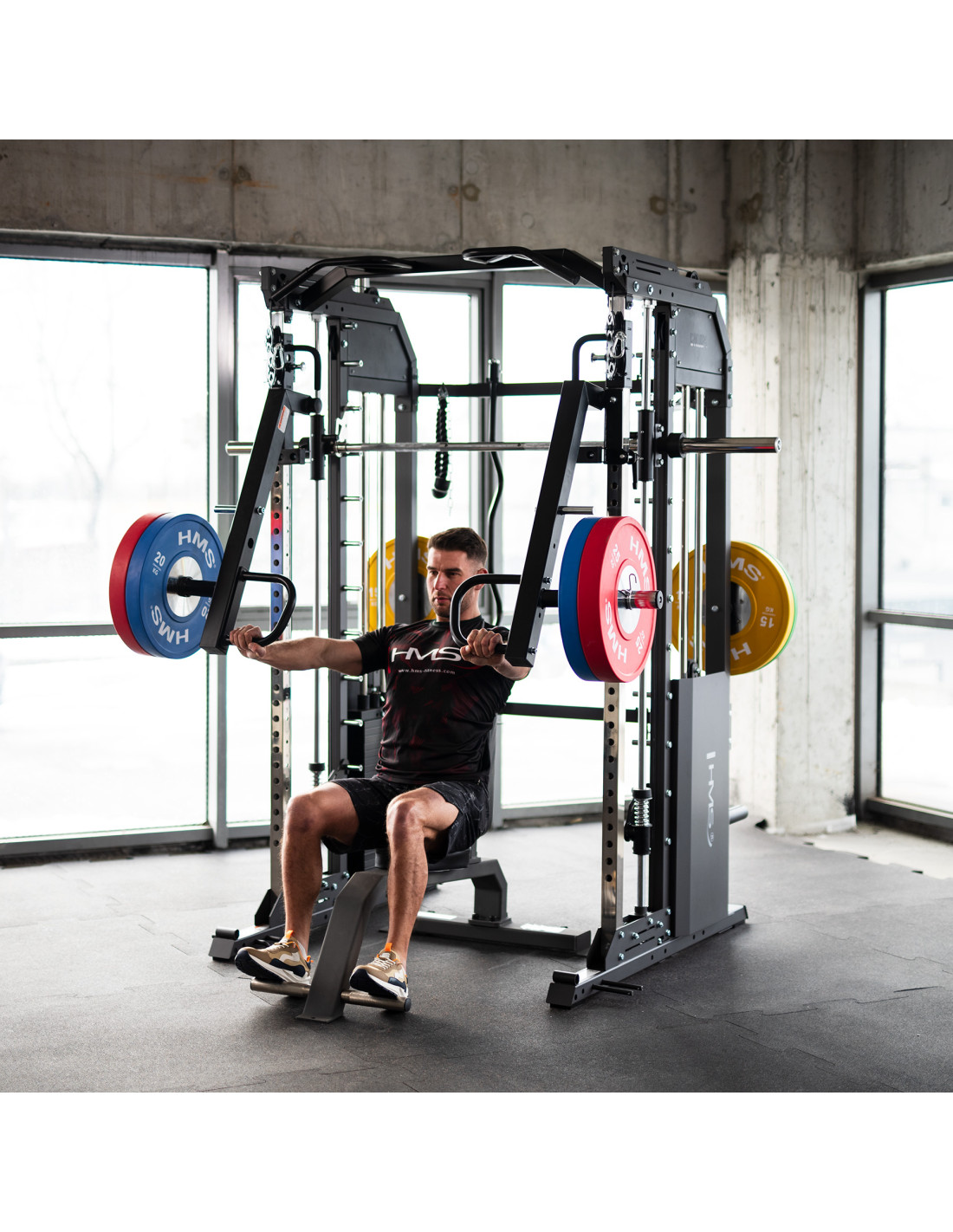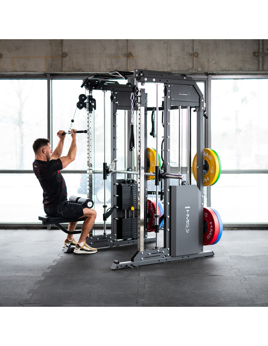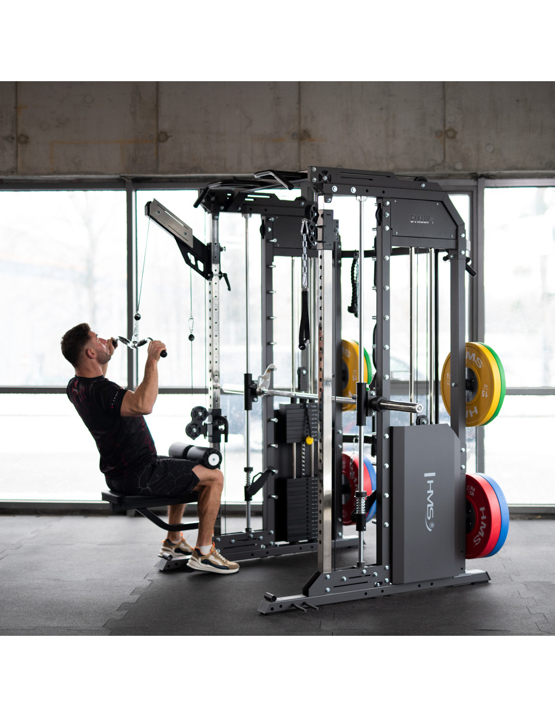 Cyklop 4 ist ein Produkt der Marke HMS, die Vorteile einer Multipresse (Smith Machine) und einer Kraftstation verbindet. Das ist ein Produkt, das Übungen für alle Körperpartien unter komfortablen Bedienmöglichkeiten ermöglicht. Cyklop 4 ist ideal für Personen, die ihre Fitness, Körperform, Muskelmasse oder Ausdauer verbessern wollen.