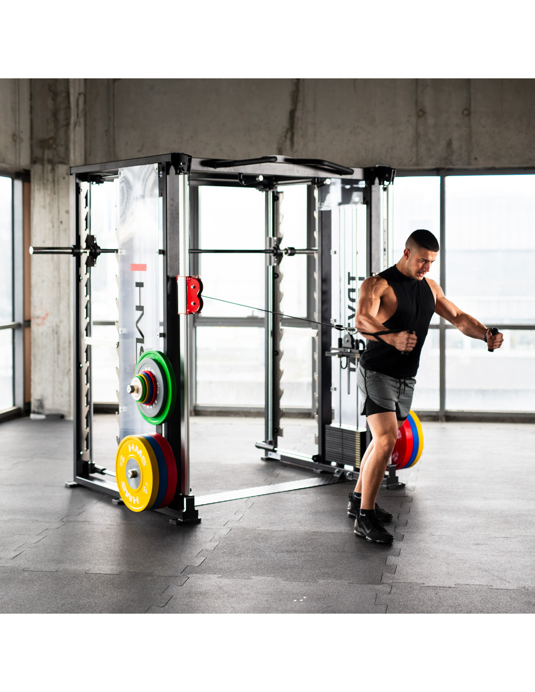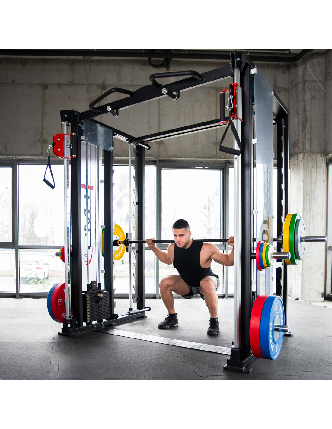 Der innovative 3D-Smith-Kran von Tryton ist eine Lösung, die das klassische Training auf die nächste Stufe hebt. Im Gegensatz zu herkömmlichen Modellen, die sich nur vertikal bewegen, kann der 3D-Kran sowohl nach oben und unten als auch vorwärts und rückwärts bewegt werden. Dadurch kann der Trainierende natürlichere und funktionellere Bewegungen ausführen, die mehr Muskeln beanspruchen und die Koordination und Stabilität beim Training verbessern.