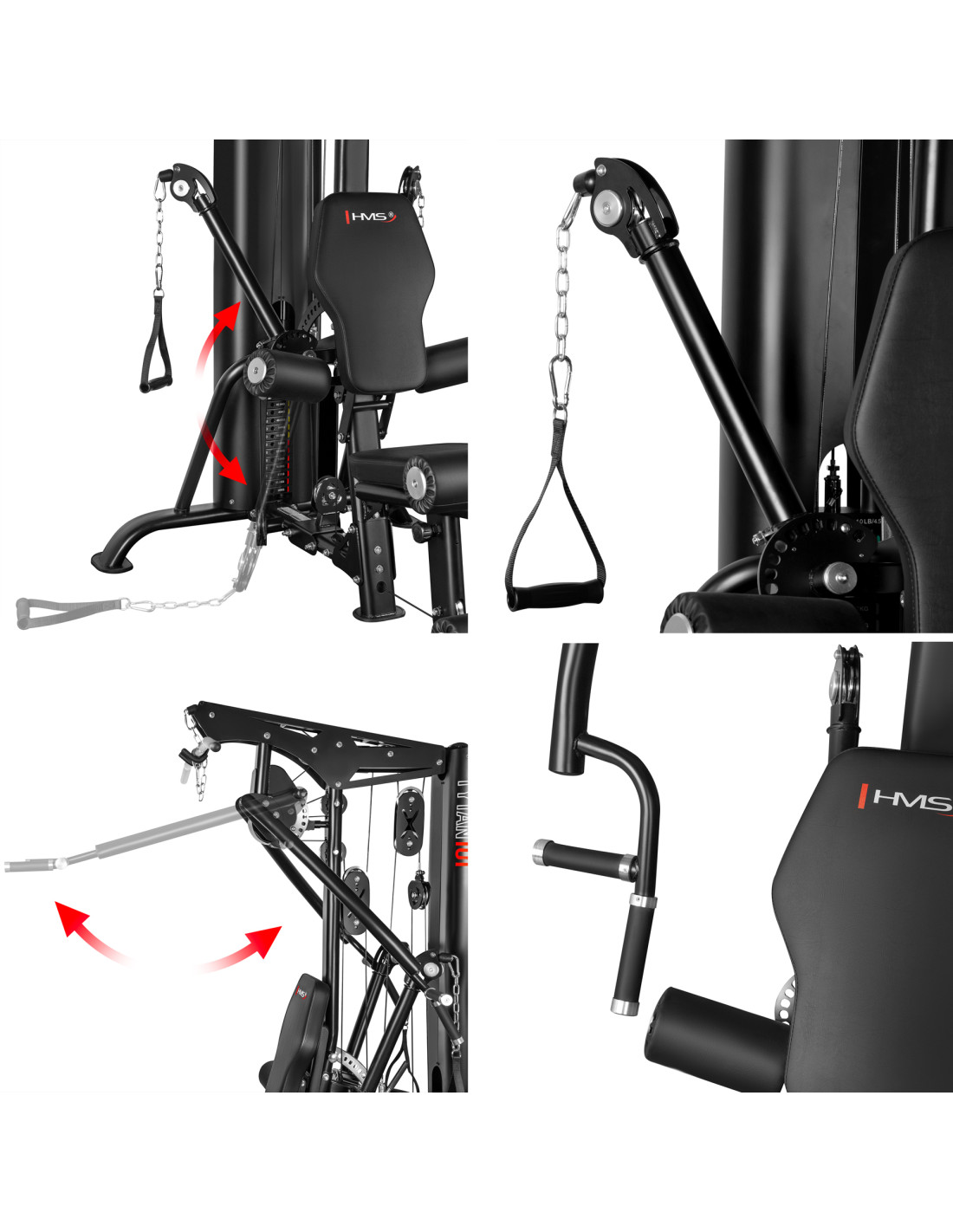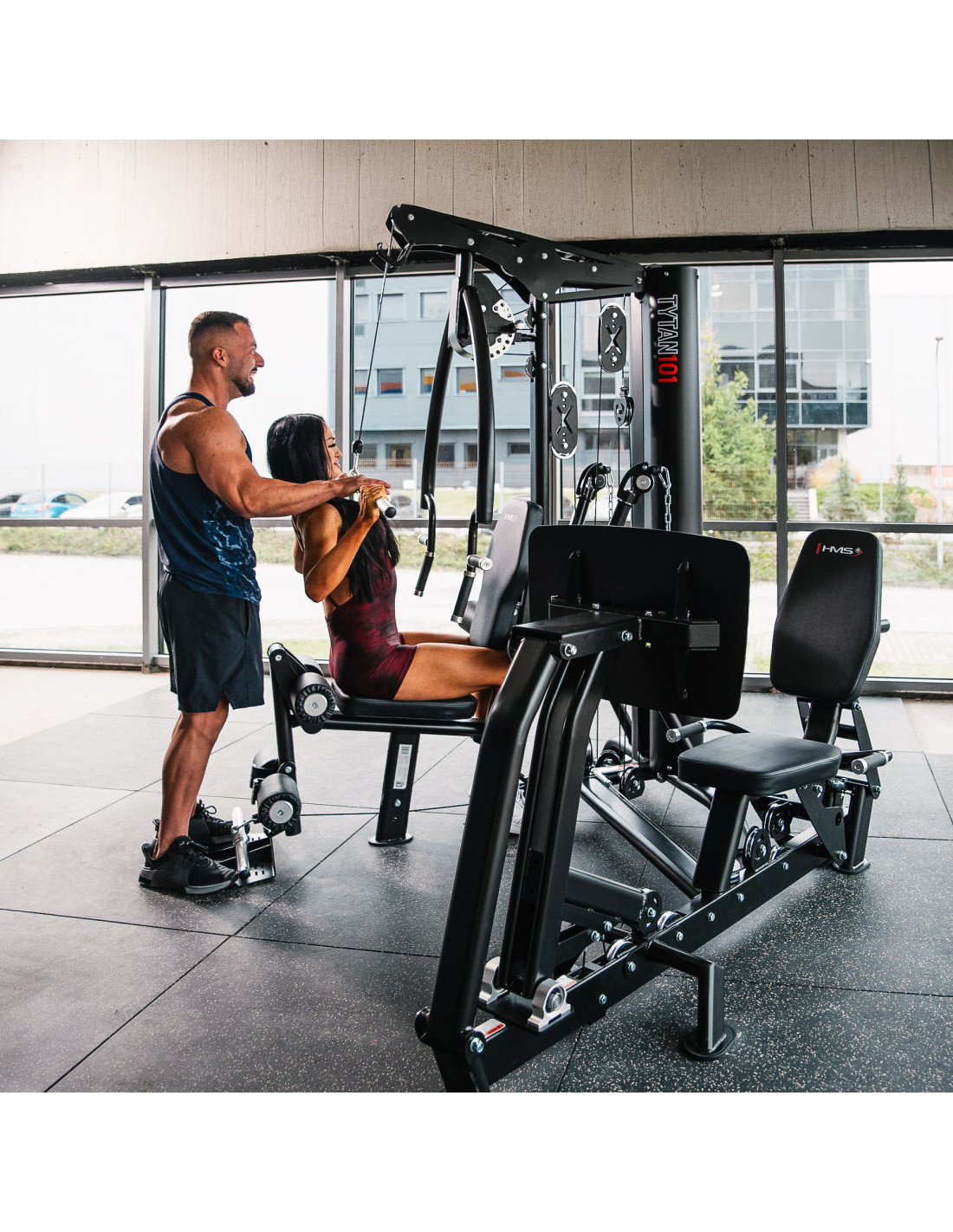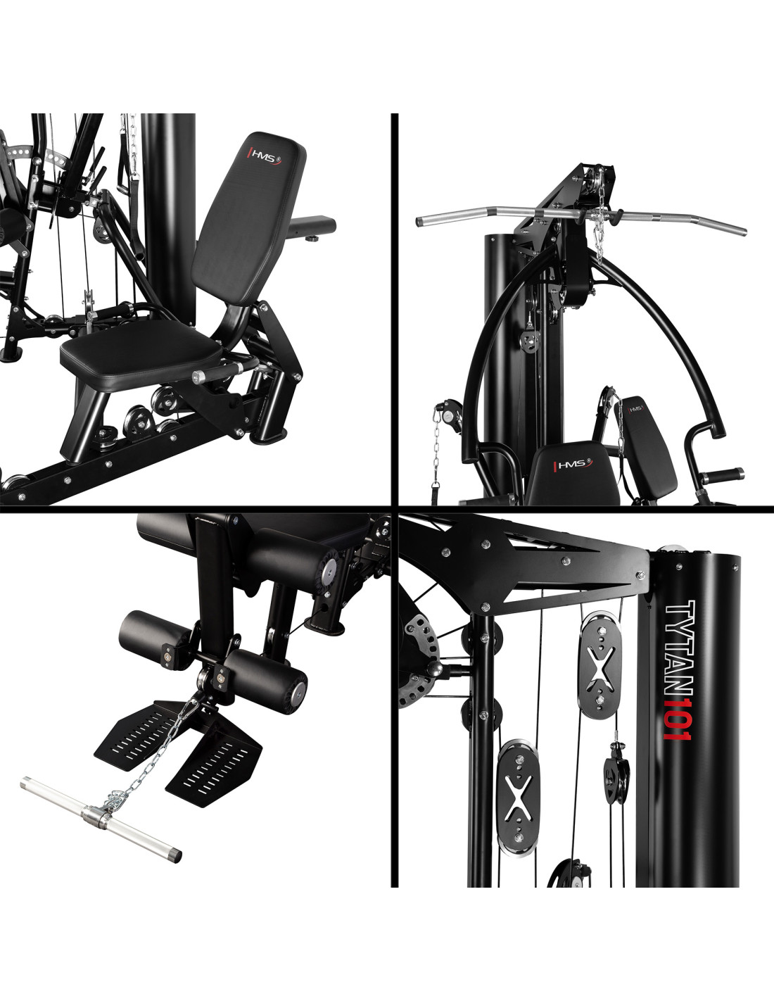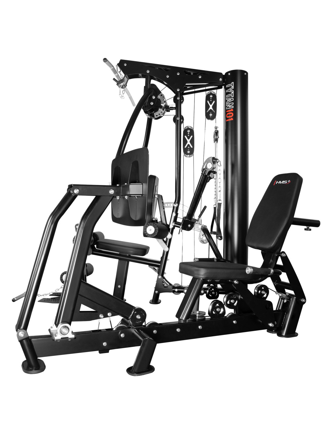 Der TYTAN 101 von HMS ist ein vollständig kommerzielles Multigym mit 90-kg-Steckgewichtsblock und 1:1-Übersetzung. Er bietet einen gleichmäßigen, realistischen Widerstand und ein komplettes Ganzkörper-Workout auf kleinem Raum. Die weitreichende Verstellung von Sitz, Rückenlehne und Armen ermöglicht die präzise Anpassung an jeden Nutzer.