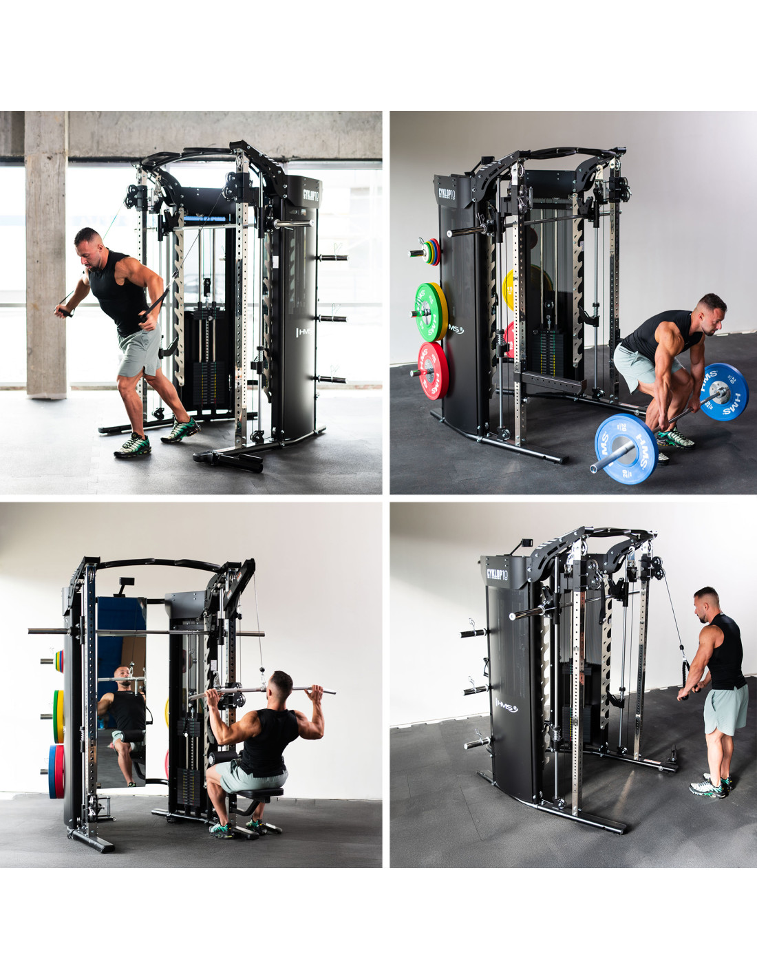 Der CYKLOP 10 ist eine fortschrittliche Trainingsstation – eine komplette 3-in-1-Lösung, die Smith-Maschine, Power Rack und Kabelzug-/Functional-Trainer verbindet. Mit zwei präzisen 90-kg-Steckgewichtsblöcken und einem cleveren Mechanismus zur Kopplung der Smith-Stange mit dem Stack trainierst du mit freien Gewichten, am Steckgewicht – oder… mit beidem gleichzeitig. Eine Maschine, die den halben Kraftraum ersetzt.