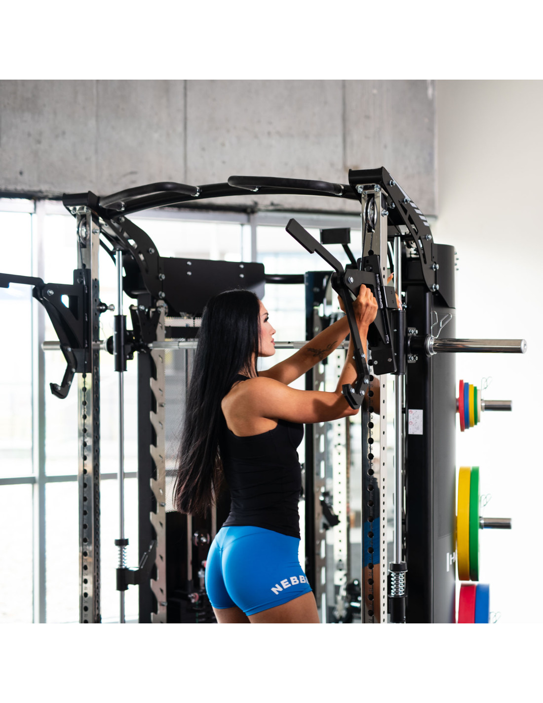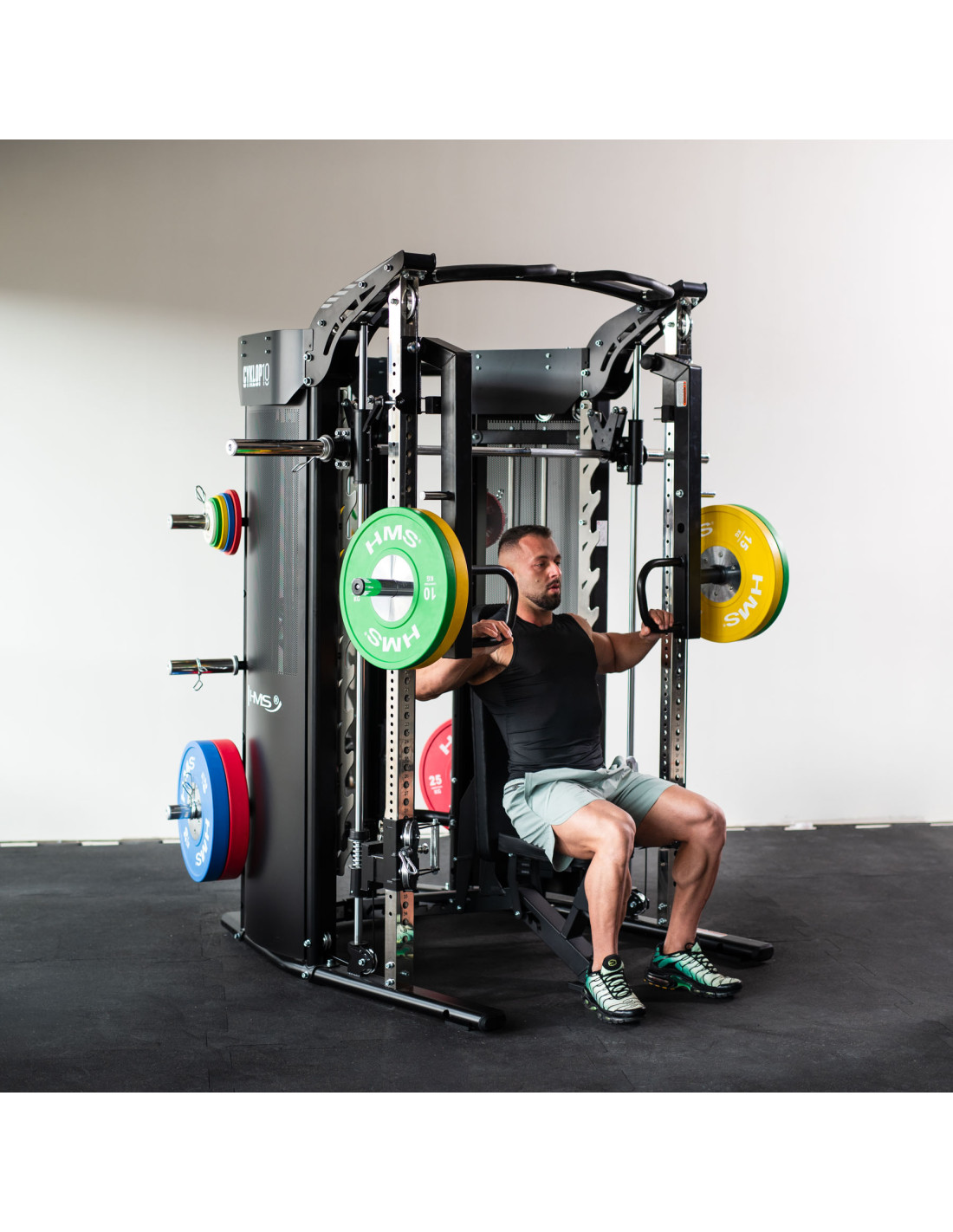 - Volles Übungsspektrum: von Kniebeugen und Drücken über die Smith-Maschine, Rudern und Latziehen bis zu Kabelzug-Übungen und Klimmzügen.