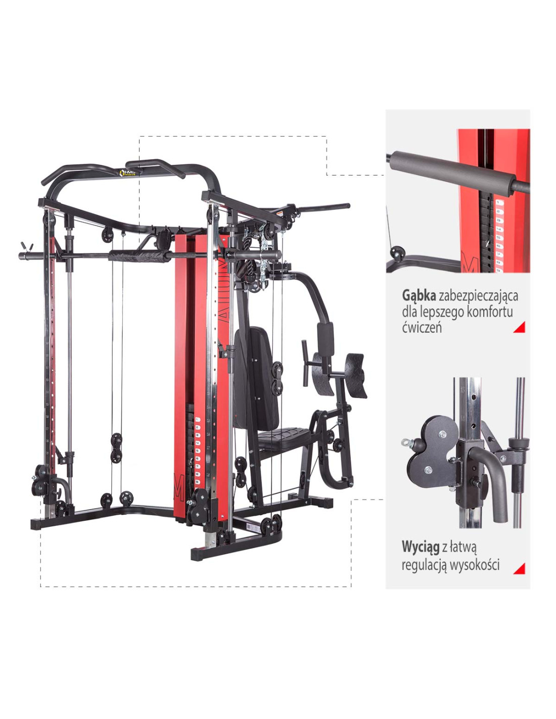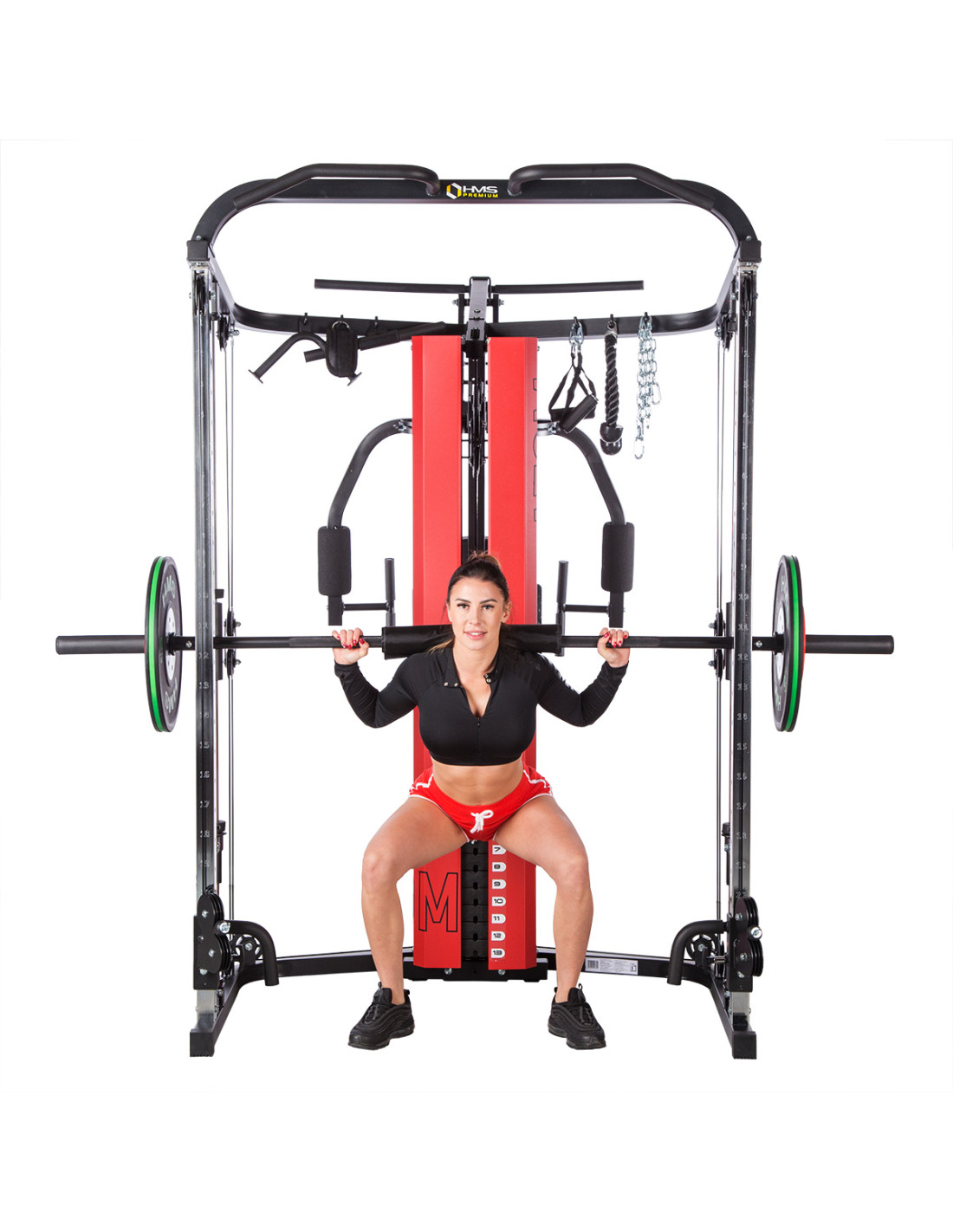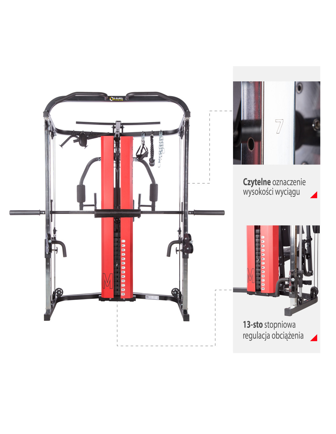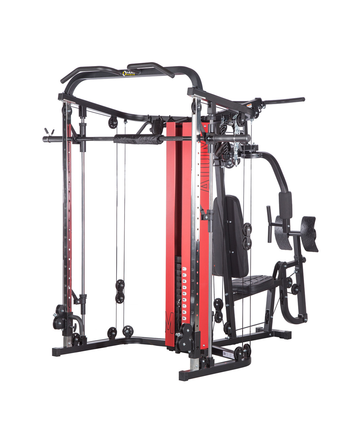 Das Sportgerät ATOM der Marke HMS ist eine Kombination aus einer Kraftstation und einer Multipresse (Smith machine). Dies gibt den Trainierenden viele Übungsmöglichkeiten und ermöglicht es, ein komplexes Training für den ganzen Körper durchzuführen.