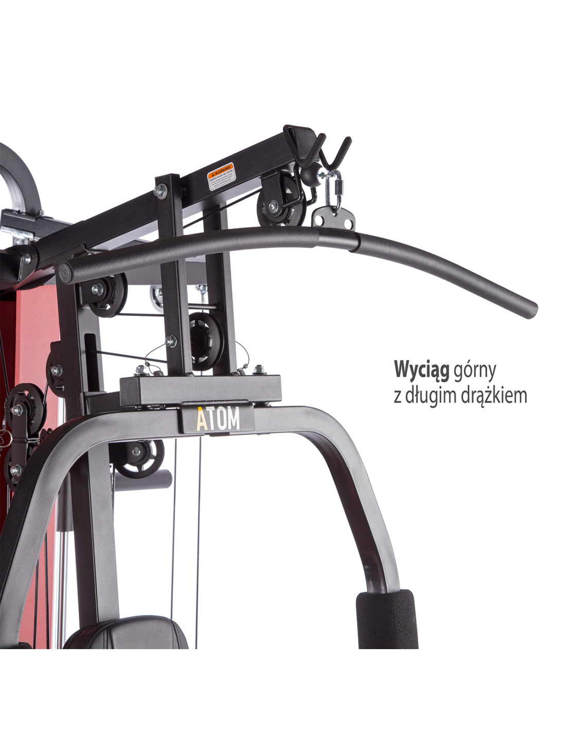 ATOM bedeutet Trainingskomfort. Die ergonomische Rückenlehne und der Sitz garantieren eine bequeme Position während der Trainings. Die Höhenverstellung der Fußstütze bei der Beinpresse erleichtert es, dieses Produkt an Bedürfnisse des Trainierenden anzupassen. Zur Langhantel bekommt man auch ein spezielles Nackenpolster, das den Nutzer bei Kniebeugen schützt. Die rutschfesten Materialien auf den Handgriffen von der Klimmzugstange und vom Arm sorgen für einen sicheren Halt und die Sicherheit.