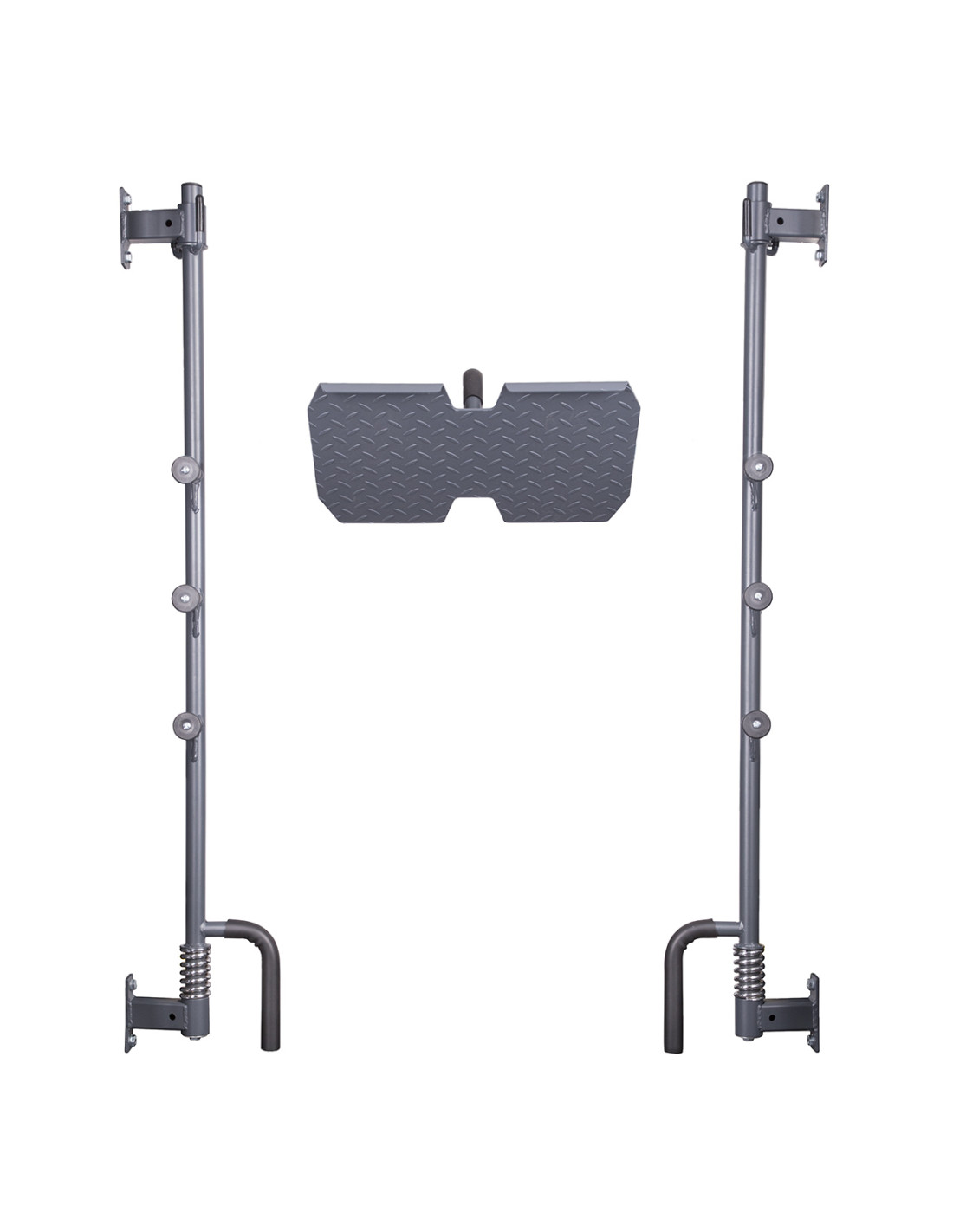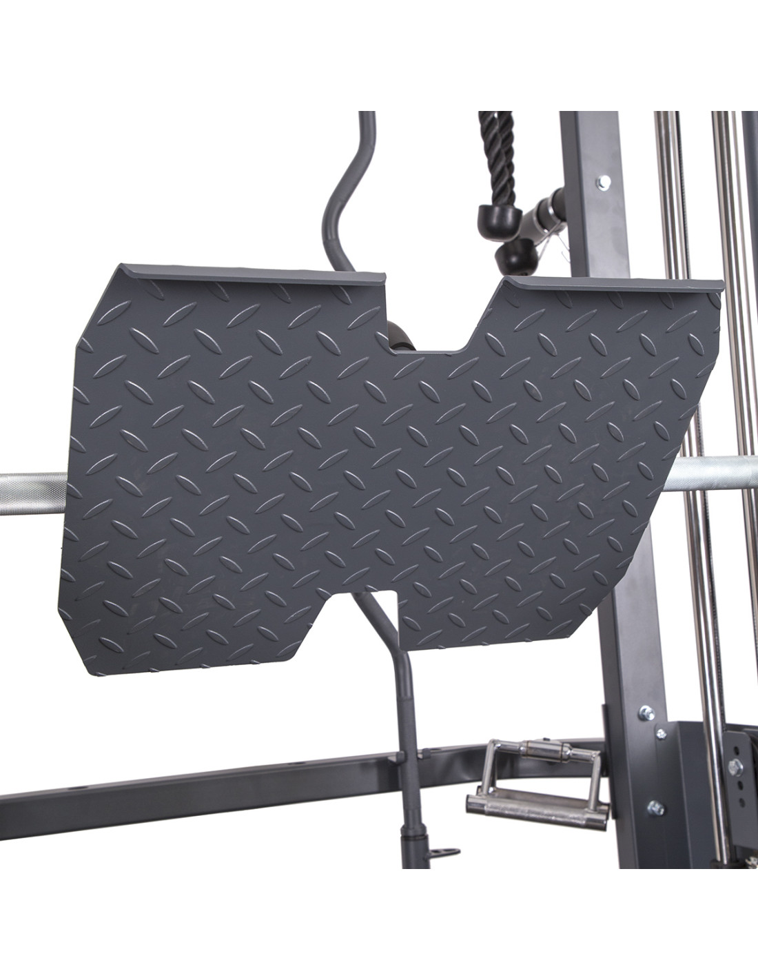 Die Fußstütze lässt sich an der Langhantelstange montieren. Es ist daher möglich, sie als Beinpresse zu benutzen. Die Langhantelstange wird dadurch mit den Beinen nach oben gedrückt. Sie liegen in dieser Zeit auf der Matte. Die Montage ist sehr einfach und die zusätzlichen Sicherheitselemente gewährleisten Ihnen die Sicherheit. In der Position, in der sich Ihr Körper befindet, können Sie nicht nur den vierköpfigen Muskel trainieren, sondern auch Gesäßmuskeln. Bei dieser Übung werden Ihre Gesäßmuskeln stark gedehnt, was einen Einfluss auf die Effektivität hat. Je größerer der Bewegungsumfang, desto bessere Dehnung der Muskeln und bessere Trainingsergebnisse.