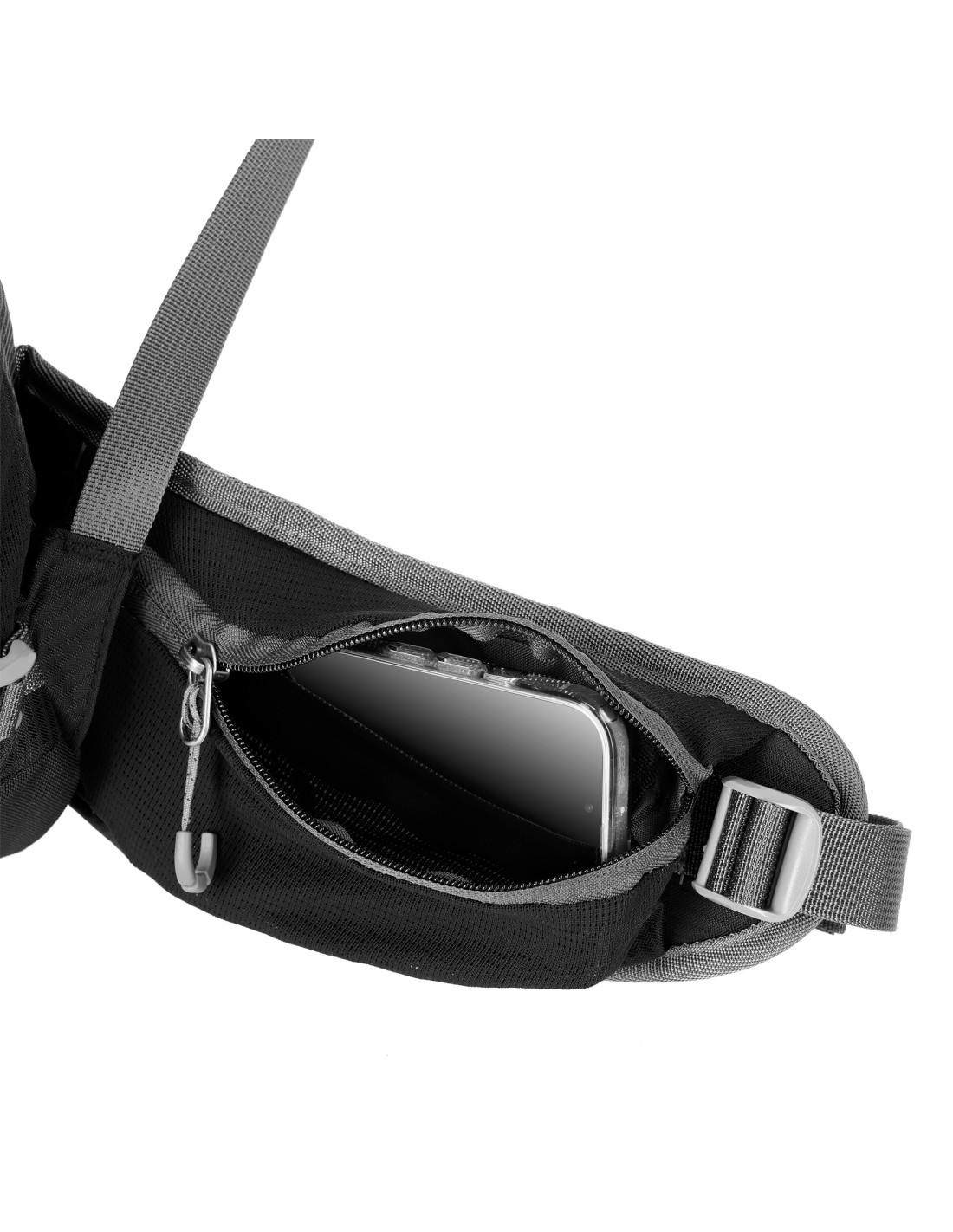 Eine integrierte Rettungspfeife an der Brustgurtschnalle sorgt für mehr Sicherheit im Notfall. Der Hüftgurt verteilt nicht nur das Gewicht gleichmäßig, sondern stabilisiert auch den Rucksack und bietet zusätzlich Taschen für Kleinigkeiten wie Snacks, Schlüssel oder das Handy.