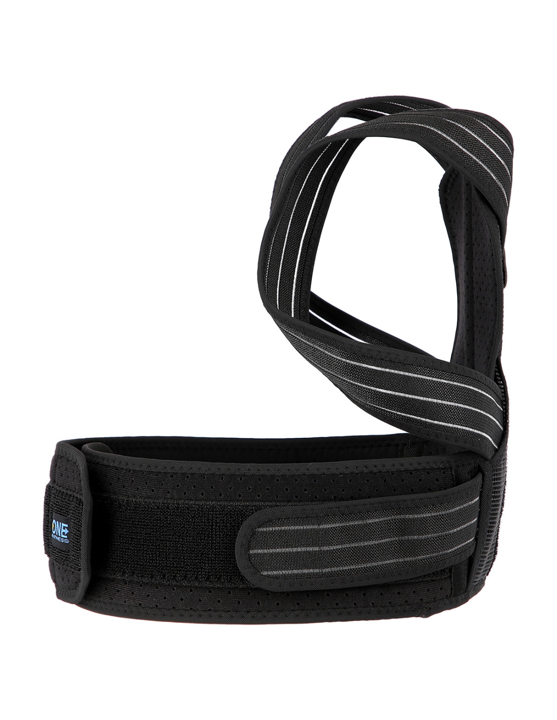 Der KP207 ONE FITNESS Geradehalter dient zur aufrechten Haltung Ihrer Wirbelsäule. Er versteift die Brustwirbelsäule und verhindert die Krümmung. Seine Anwendung ist sowohl für Menschen mit einer sitzenden Lebensweise als auch für Menschen geeignet, die körperlich aktiv sind und im Fitnessstudio trainieren. Der KP207 Geradehalter hilft nicht nur, eine korrekte Körperhaltung einzunehmen. Diese Gewohnheit der aufrechten Körperhaltung prägt sich auch dadurch Ihnen im Gedächtnis ein. Mit der Möglichkeit, die Gurte und die Klettverschlüsse zu verstellen, wird die Anpassung des Geradehalters an unsere Figur kein Problem sein. Der KP207 Geradehalter kann sowohl auf als auch unter der Kleidung verwendet werden.
