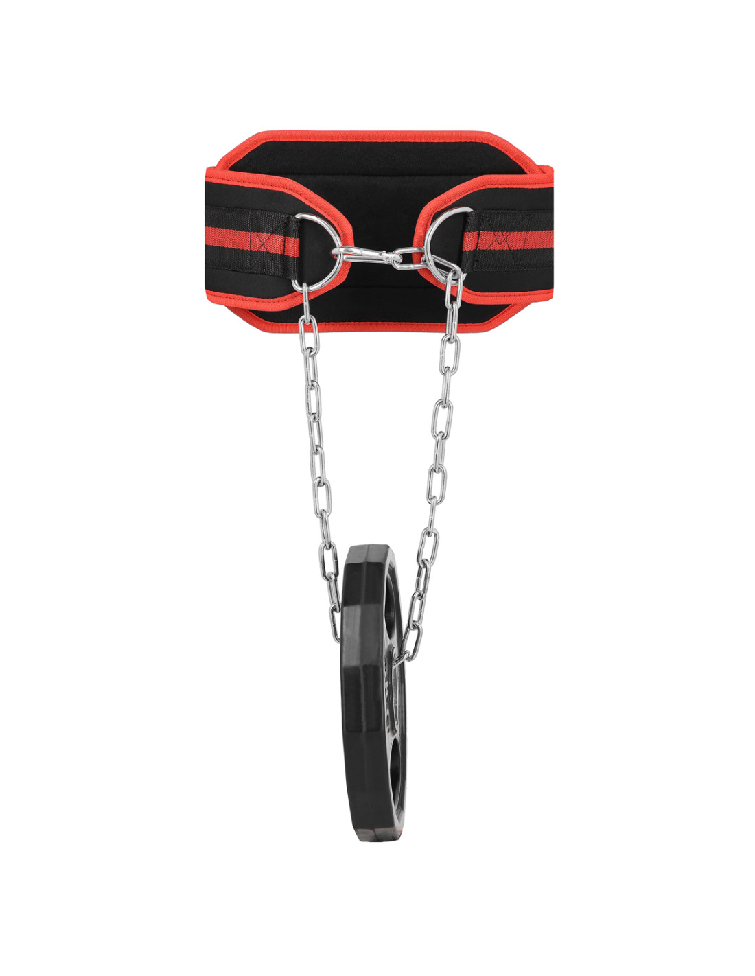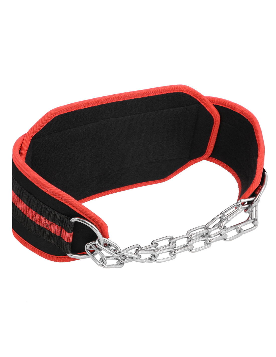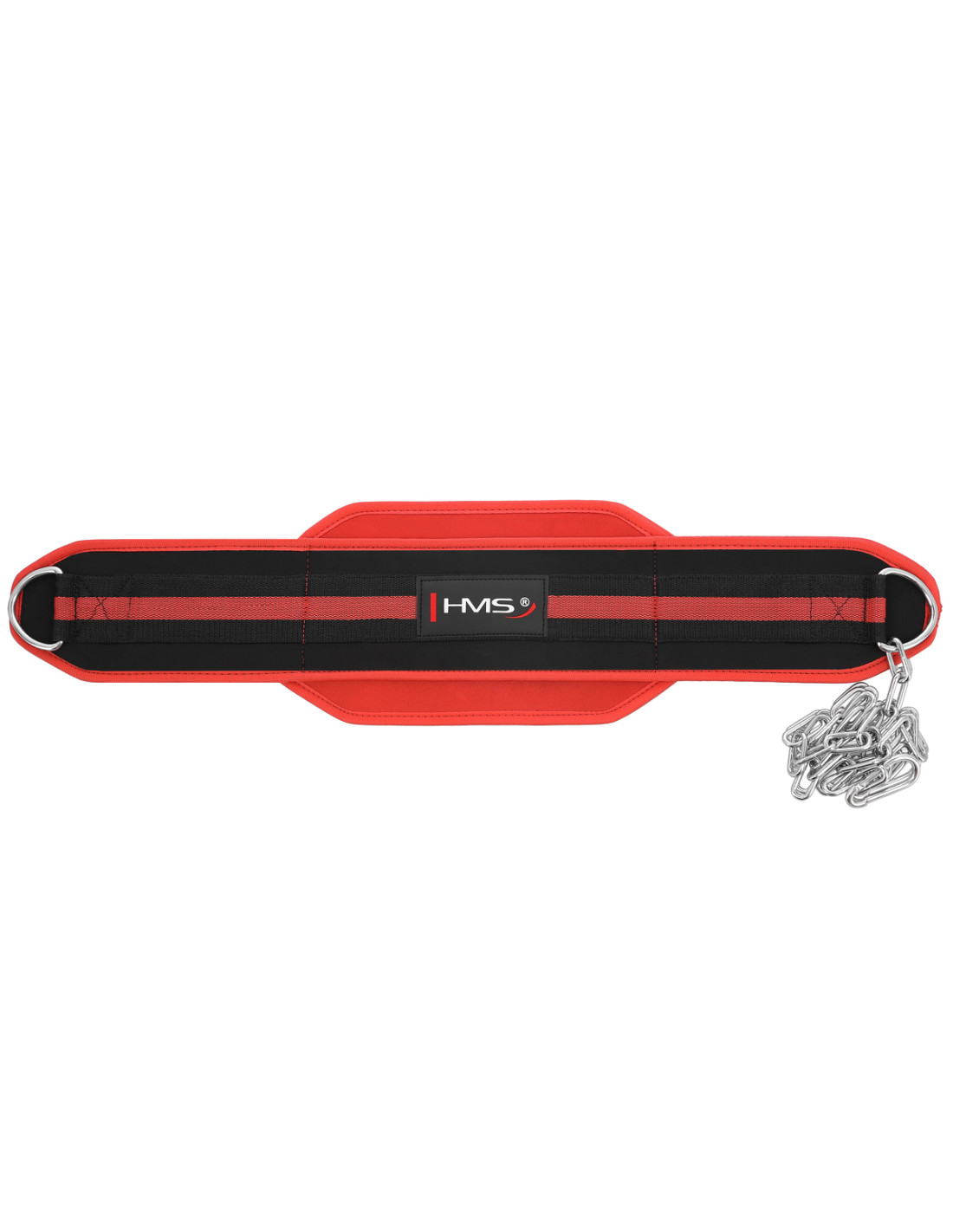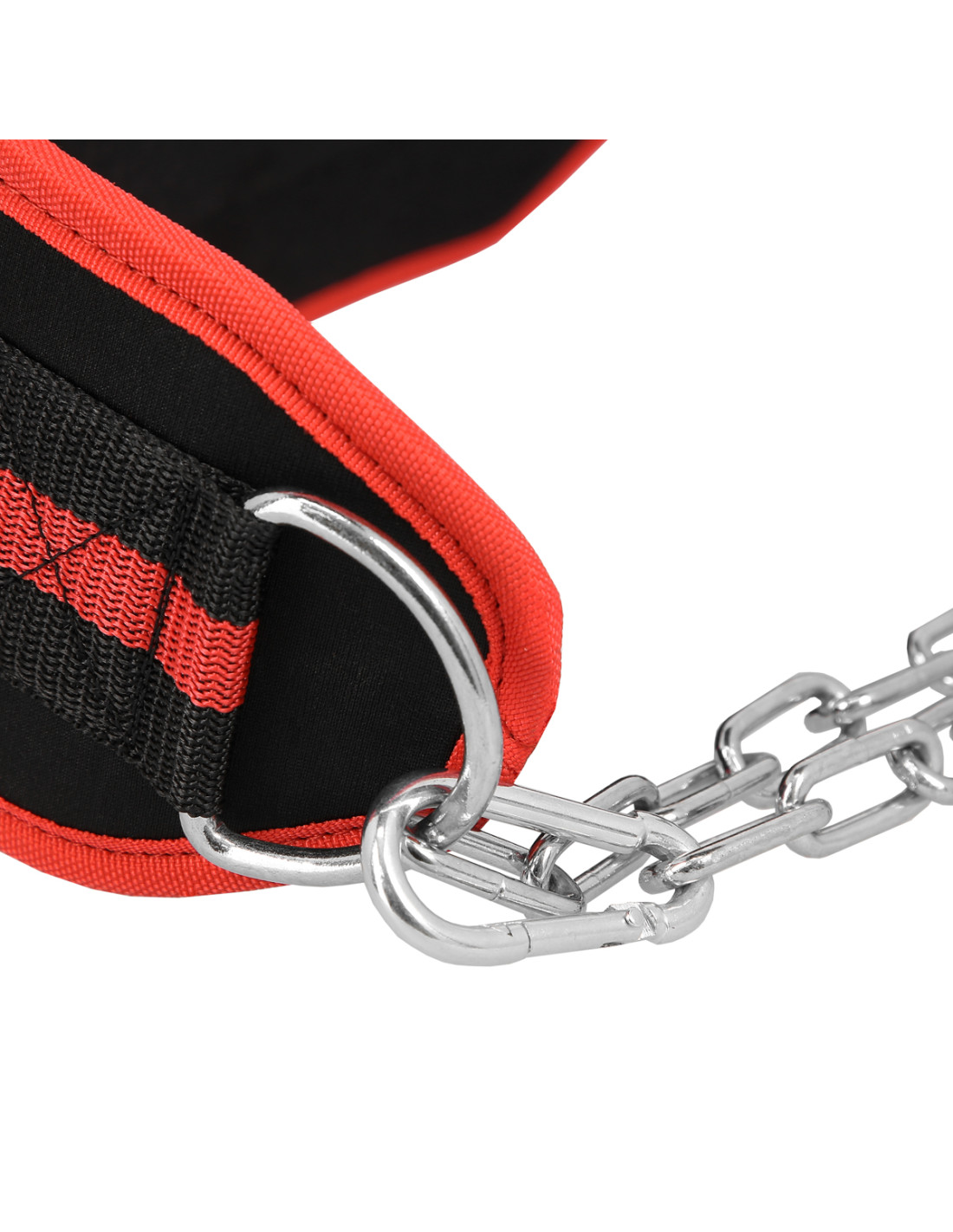 Die Kette aus Stahl ist am Gewichthebergürtel befestigt. Dadurch kann zusätzliche Belastung aufgehängt werden. Dies ermöglicht es Ihnen, schnelle und komfortable Gewichtsänderung. Die Glieder in der Kette dienen zur Einhaltung der richtigen Position der Kette bei jedem Krümmungsradius.