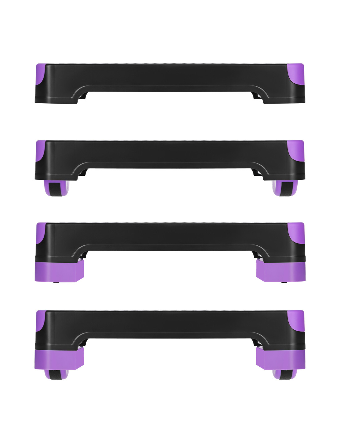 Der Step verfügt über eine zweistufige Höhenverstellung, mit der Sie die Intensität Ihres Trainings an Ihre aktuelle Fitness oder die jeweilige Übung anpassen können. Die niedrigere Einstellung eignet sich ideal zum Aufwärmen oder für Rehabilitationsübungen, während die höhere Einstellung perfekt für dynamischere und intensivere Cardio-Workouts ist.
