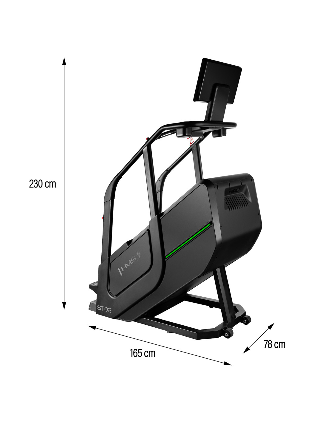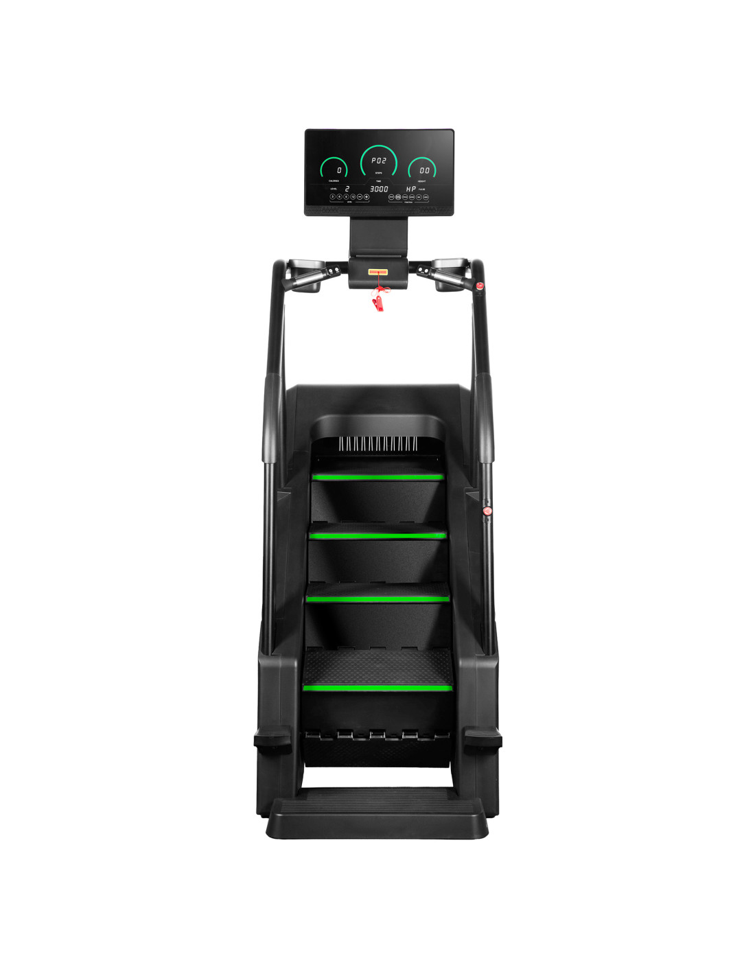 Der ST02-Treppensteiger misst Geschwindigkeit, Anzahl der Stufen, Höhe, Zeit, Kalorienverbrauch, Puls und Körperfett, sodass Sie Ihre Fortschritte überwachen und Ihr Training an Ihre individuellen Ziele anpassen können. Mit einem kabellosen Ladegerät können Sie Ihre mobilen Geräte während des Trainings bequem aufladen. Das intuitive Bedienfeld mit Geschwindigkeitsregler und einer Start-/Stopptaste am Lenker sorgt für eine einfache und schnelle Bedienung.