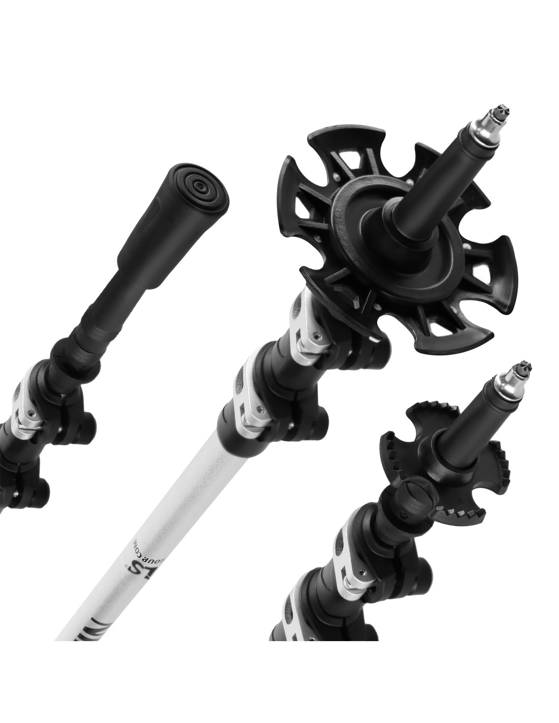 - Dreiteilige Konstruktion – sorgt für Stabilität und einfache Anpassung der Länge an den Benutzer und das Gelände.