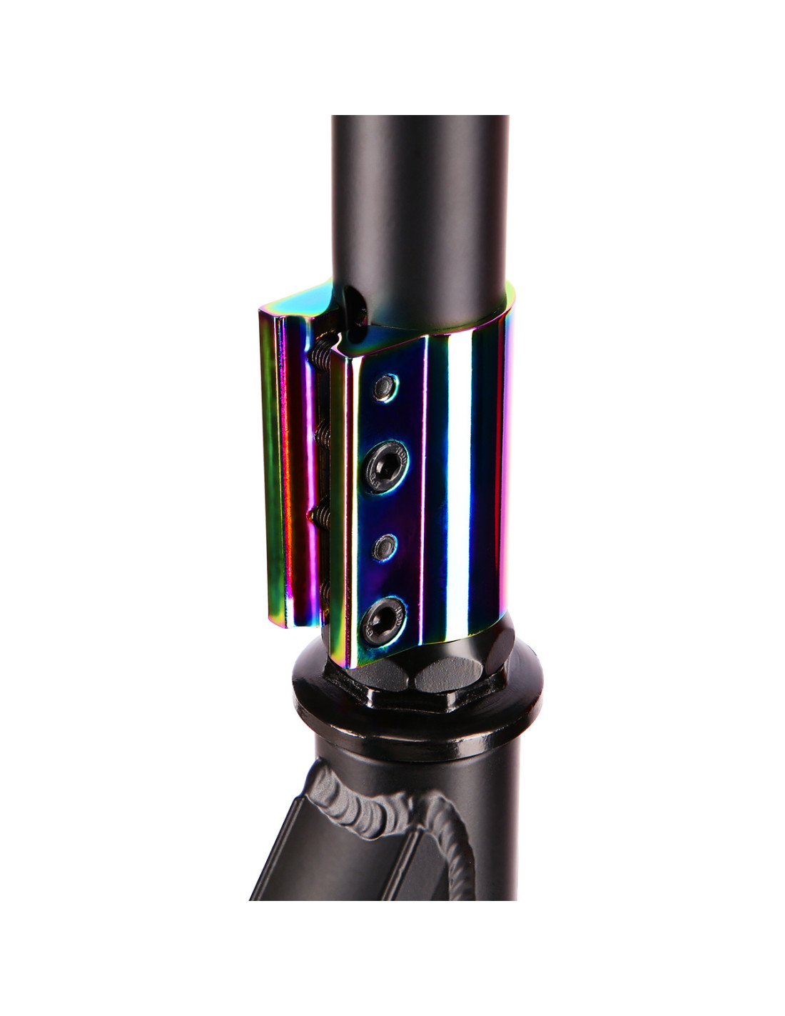 Der Stunt- und Freeride-Rroller verfügen über keinen Faltmechanismus und keine Lenkerhöheneinstellung. Stattdessen verfügen sie über verstärkte Decks, Lenker und solide Schweißnähte, die wichtige Komponenten miteinander verbinden und so die Steifigkeit der Konstruktion erhöhen. Bei einem Stuntroller gehört zu den wichtigsten Merkmalen ein geringes Gewicht - was die Ausführung von Tricks erleichtert - und eine lange Lebensdauer - was die Sicherheit bei dynamischen Sprüngen erhöht und die Möglichkeit von Fehlfunktionen verringert. Der Stuntroller verfügt über ein robustes, dreikammeriges Deck, was sowohl Anfängern als auch Fortgeschrittenen Stuntern eine zufriedenstellende Durchführung von Tricks ermöglicht.
