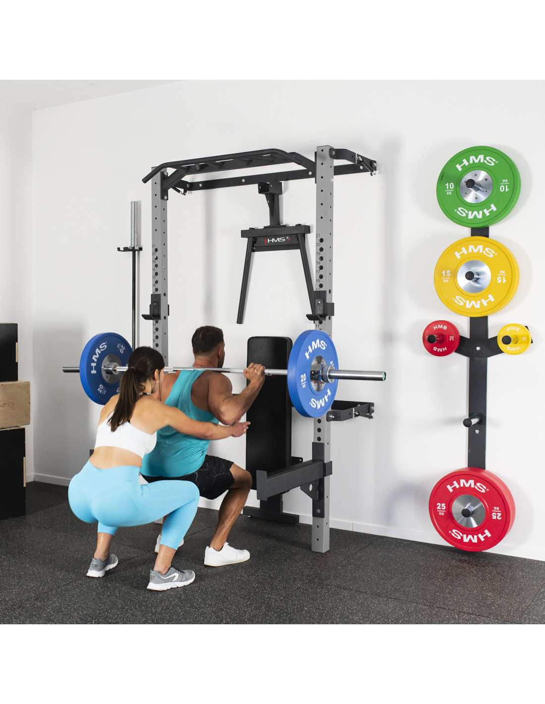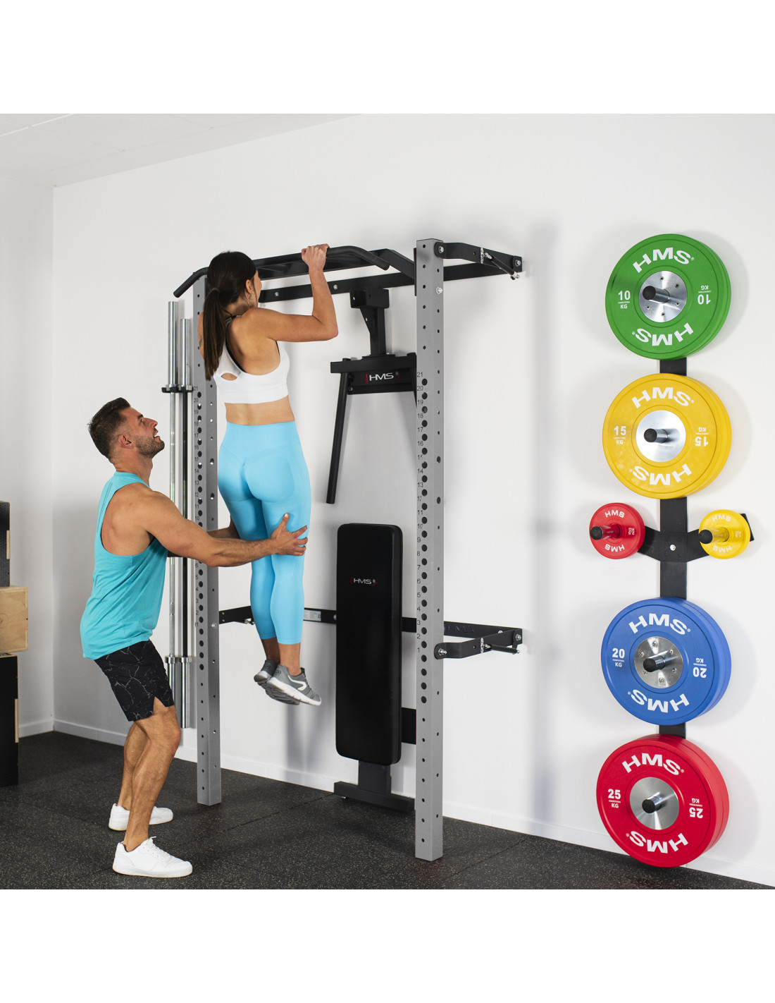 Das verstellbare Wall Rack KLT22 der Marke HMS ist so konzipiert, um den aktuellen Markttrends zu entsprechen und die Erwartungen der anspruchsvollsten Kunden zu erfüllen. Wall Rack wird in dieser Variante mit zusätzlicher Ausrüstung verkauft. Neben einer Klimmzugstange, Langhantelhaken und Sicherheitsstützen finden Sie eine klappbare Trainingsbank, eine Dip-Station, eine wandmontierte Gewichtsablage und einen Halter für Langhantelstangen. Ein solches Set erweitert Ihr Trainingsspektrum und bietet neue Aufbewahrungsmöglichkeiten für Ihre Ausrüstung.