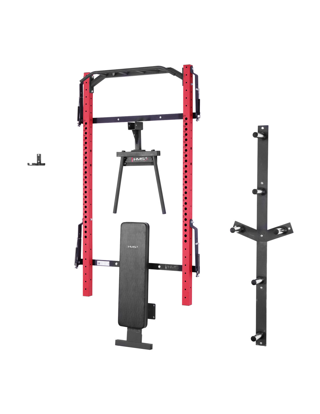 Das verstellbare Wall Rack KLT22 der Marke HMS ist so konzipiert, um den aktuellen Markttrends zu entsprechen und die Erwartungen der anspruchsvollsten Kunden zu erfüllen. Wall Rack wird in dieser Variante mit zusätzlicher Ausrüstung verkauft. Neben einer Klimmzugstange, Langhantelhaken und Sicherheitsstützen finden Sie eine klappbare Trainingsbank, eine Dip-Station, eine wandmontierte Gewichtsablage und einen Halter für Langhantelstangen. Ein solches Set erweitert Ihr Trainingsspektrum und bietet neue Aufbewahrungsmöglichkeiten für Ihre Ausrüstung.