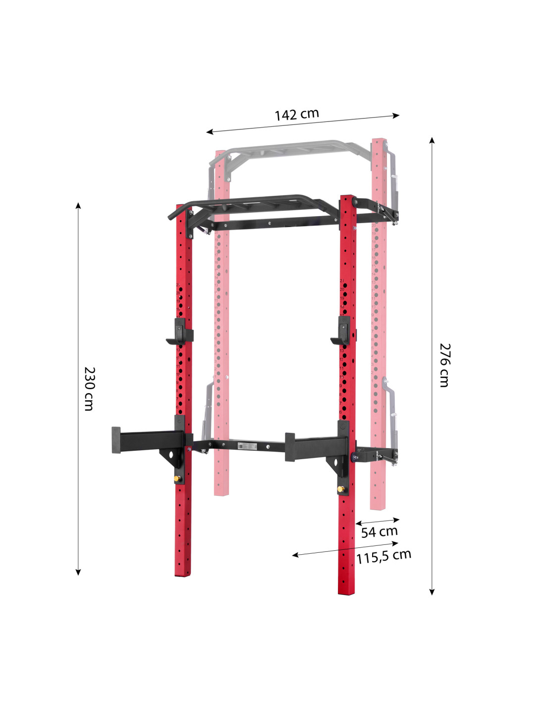 KLT23 verfügt außerdem über spezielle Stützen, die Sie an dem Rahmen befestigen können, um maximale Sicherheit beim Training mit schweren Gewichten zu gewährleisten. Die Stützen lassen sich in fast jeder Höhe anbringen und können bei Übungen wie Bankdrücken oder Langhantel-Squats verwendet werden, ohne dass Sie befürchten müssen, das Gewicht fallen zu lassen. Mit den Stützen des KLT23 können Sie an die Grenzen Ihrer eigenen Ausdauer gehen.