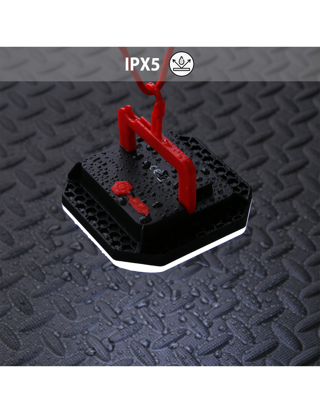 Außerdem ist das USB-M-Laden bequem und einfach, so dass Sie die Lampe schnell aufladen können, wenn es notwendig ist. Mit ihrer IPX5-Wasserfestigkeit ist die Lampe bereit, Regen und Spritzern zu begegnen und in jeder Wetterlage zuverlässig zu sein. Ein Aufhängehaken und ein ausziehbarer Standfuß erleichtern das Platzieren der Lampe dort, wo Sie sie am meisten brauchen - sei es an einem Zweig, innen im Zelt, am Rucksack oder einfach auf dem Tisch.