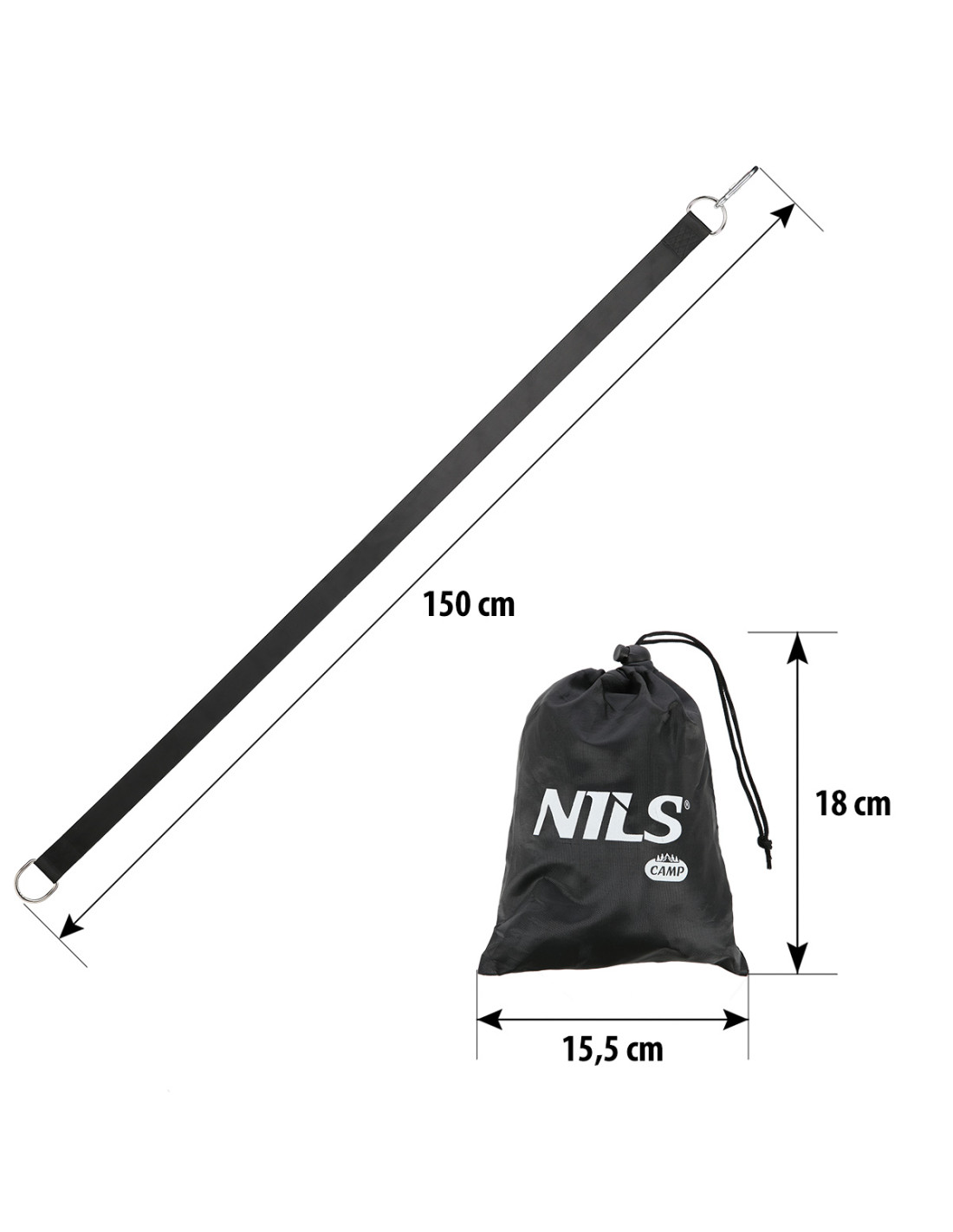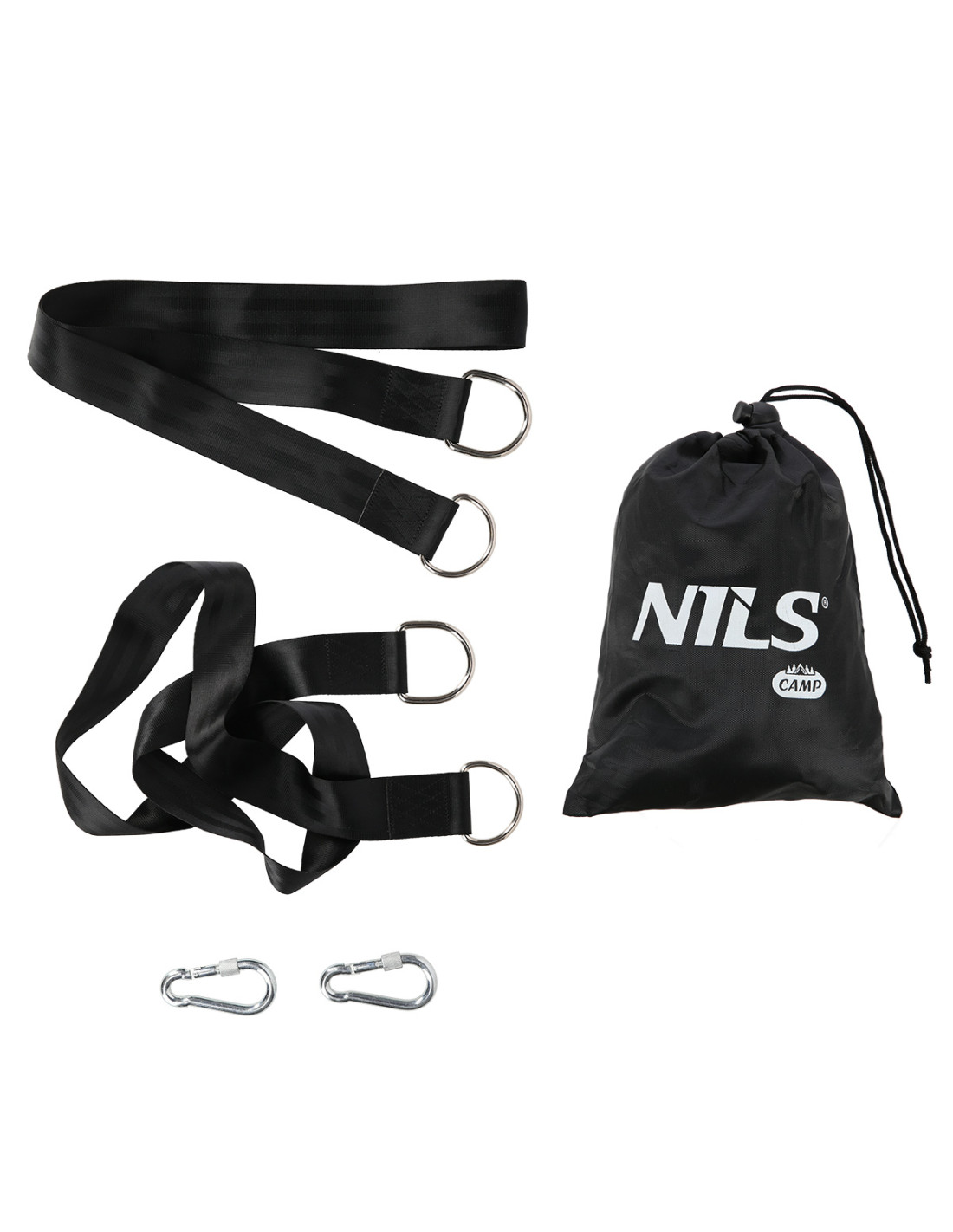 Das Set NC1722 unserer Marke NILS CAMP besteht aus robusten, langlebigen Gurten zum schnellen Aufhängen von Schaukeln, Hängematten oder Nestschaukeln an einem beliebigen Ort. Die Gurte sind aus einem Material gefertigt, das abriebfest ist, nicht dehnt und sich durch eine sehr hohe Haltbarkeit auszeichnet. Darüber hinaus sind die Gurte mit Karabinerhaken und D-Ringen aus Stahl ausgestattet, die eine schnelle und einfache Montage ohne Werkzeug ermöglichen. NC1722 wird außerdem mit einer Tragetasche für einen einfachen Transport und Aufbewahrung geliefert.