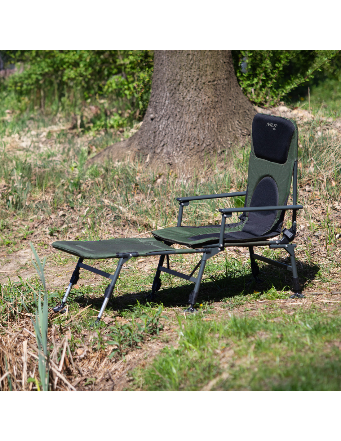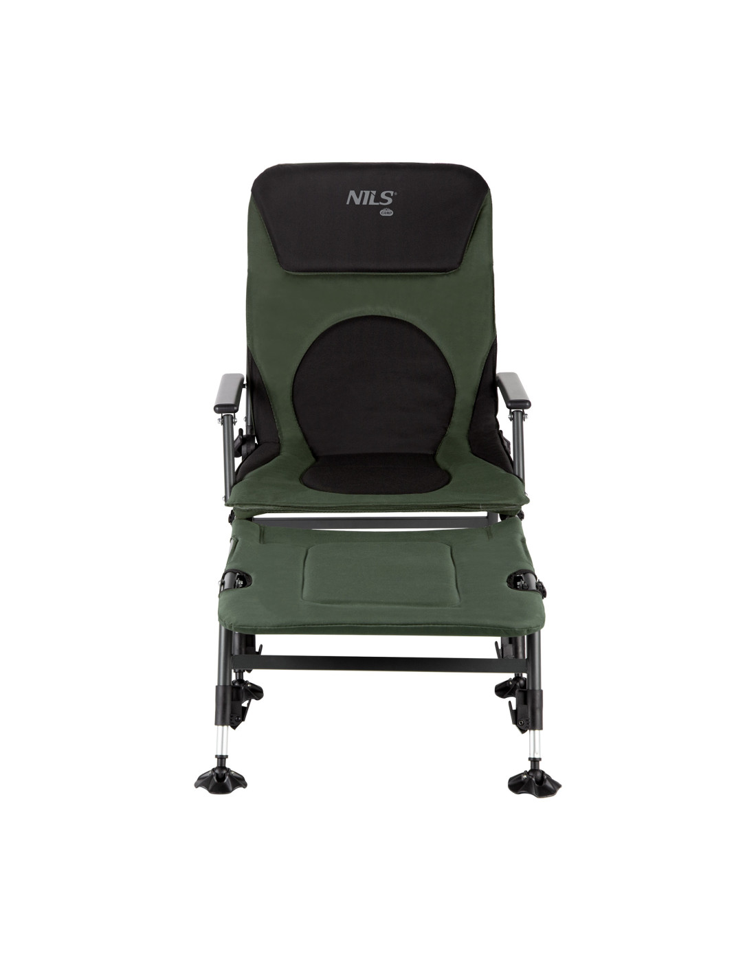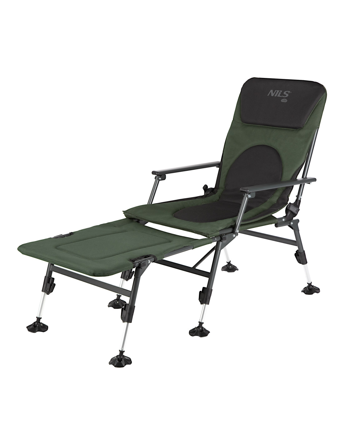 Die zusätzliche Liegefläche für den Angelstuhl NILS CAMP NC1802 ist ein echter Gamechanger, der den traditionellen Stuhl in eine echte Liege verwandelt. Dadurch kann man sich vollständig ausstrecken und die Entspannung in liegender Position genießen. Darüber hinaus ermöglicht der Verstellmechanismus der Rückenlehne den Übergang von der Sitz- zur Liegeposition, was dem Benutzer unbegrenzte Einstellungsmöglichkeiten vom 0 bis zu einem bequemen Winkel bietet, angepasst an individuelle Vorlieben.