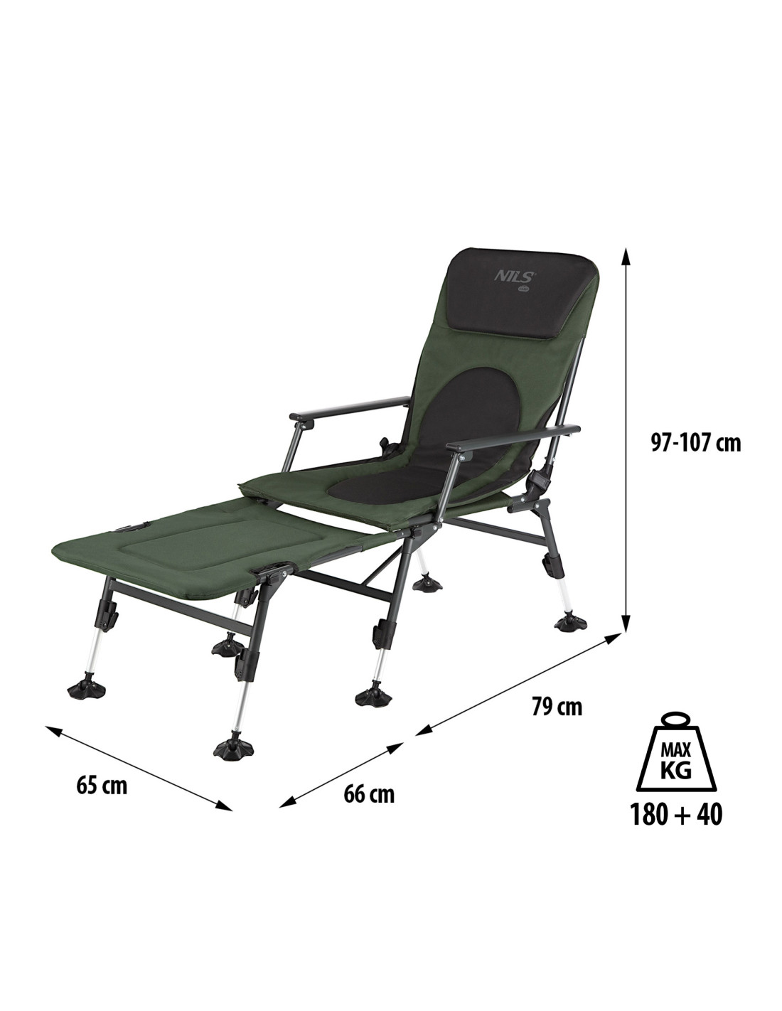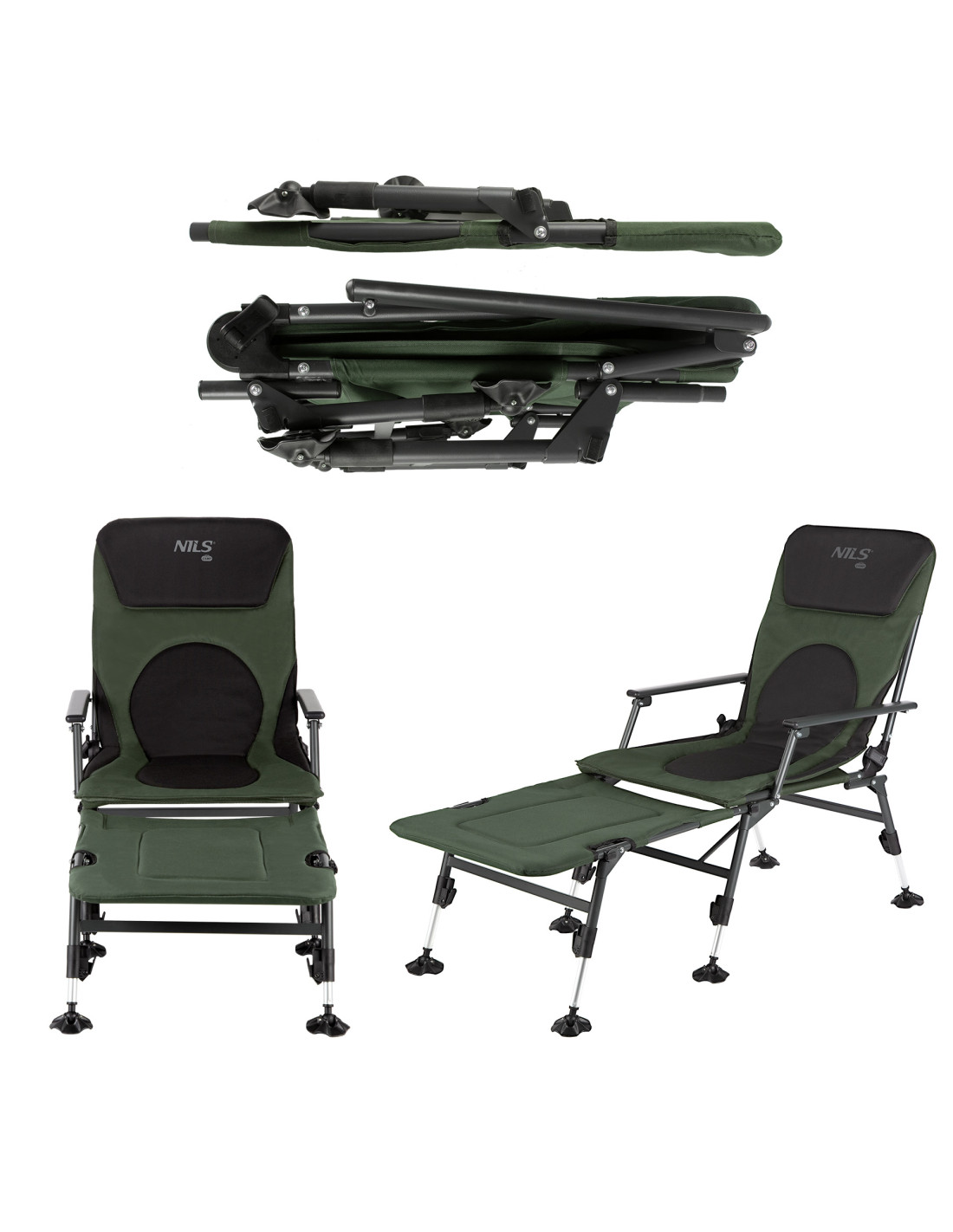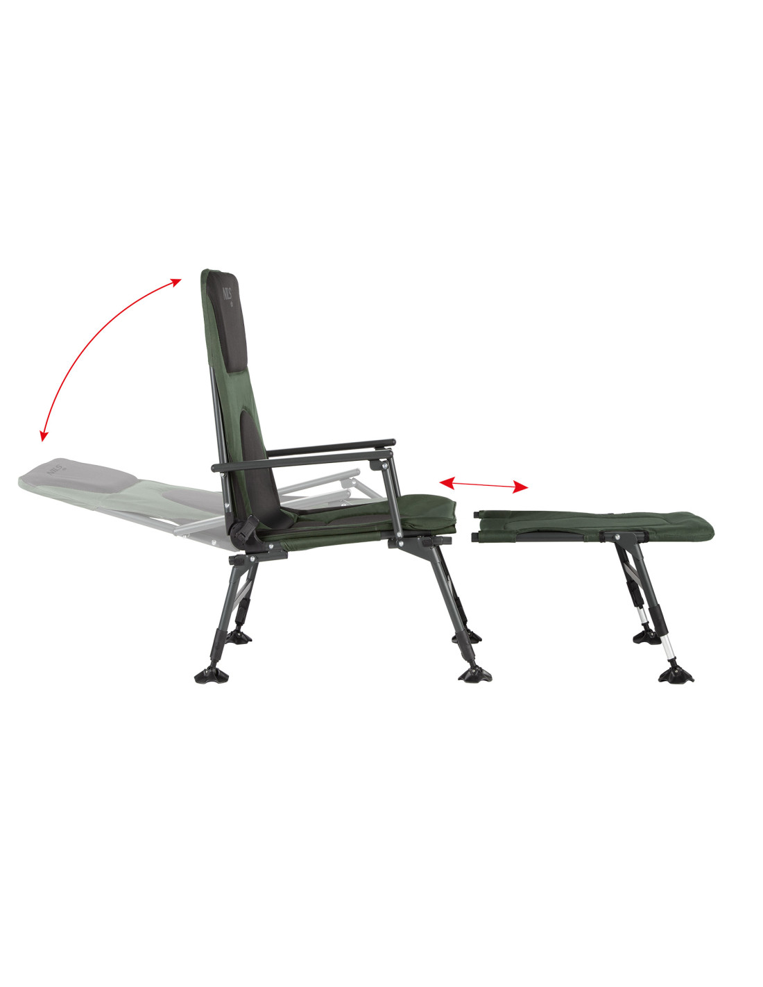 Die zusätzliche Liegefläche für den Angelstuhl NILS CAMP NC1802 ist ein echter Gamechanger, der den traditionellen Stuhl in eine echte Liege verwandelt. Dadurch kann man sich vollständig ausstrecken und die Entspannung in liegender Position genießen. Darüber hinaus ermöglicht der Verstellmechanismus der Rückenlehne den Übergang von der Sitz- zur Liegeposition, was dem Benutzer unbegrenzte Einstellungsmöglichkeiten vom 0 bis zu einem bequemen Winkel bietet, angepasst an individuelle Vorlieben.