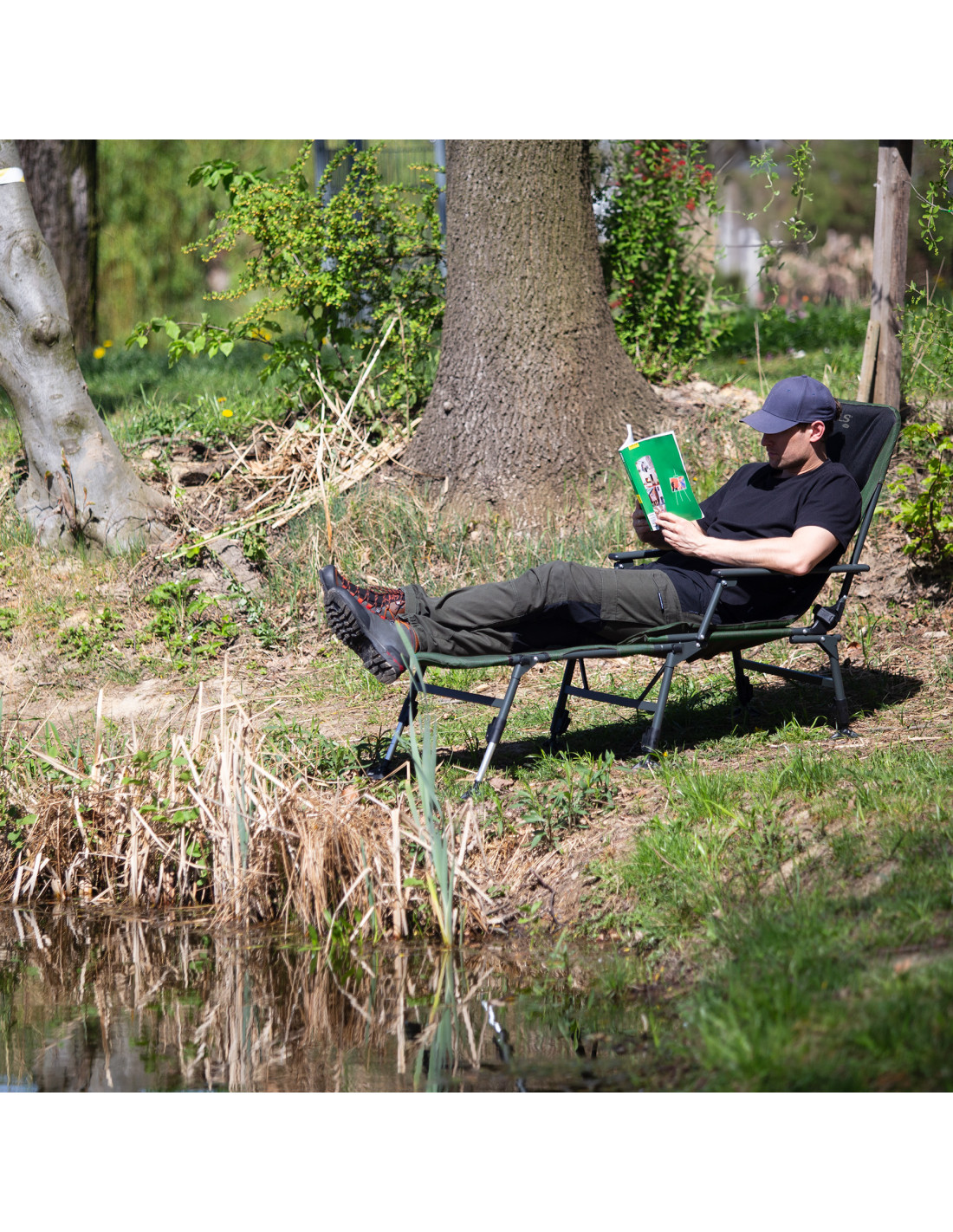 Ein Rahmen aus soliden Stahlprofilen mit einem Durchmesser von 25 mm sorgt für Stabilität und Haltbarkeit bis zu 180 kg. Angler können diesem Stuhl voll vertrauen, wissend, dass er unabhängig von den Bedingungen oder der Nutzungsintensität über viele Saisons hinweg treu dienen wird. Zusätzlich erleichtert die einfache Faltbarkeit zu kompakten Größen den Transport und die Lagerung, was besonders auf Reisen wichtig ist.