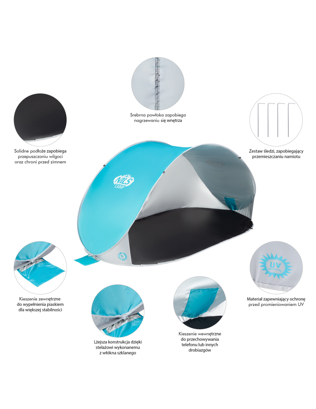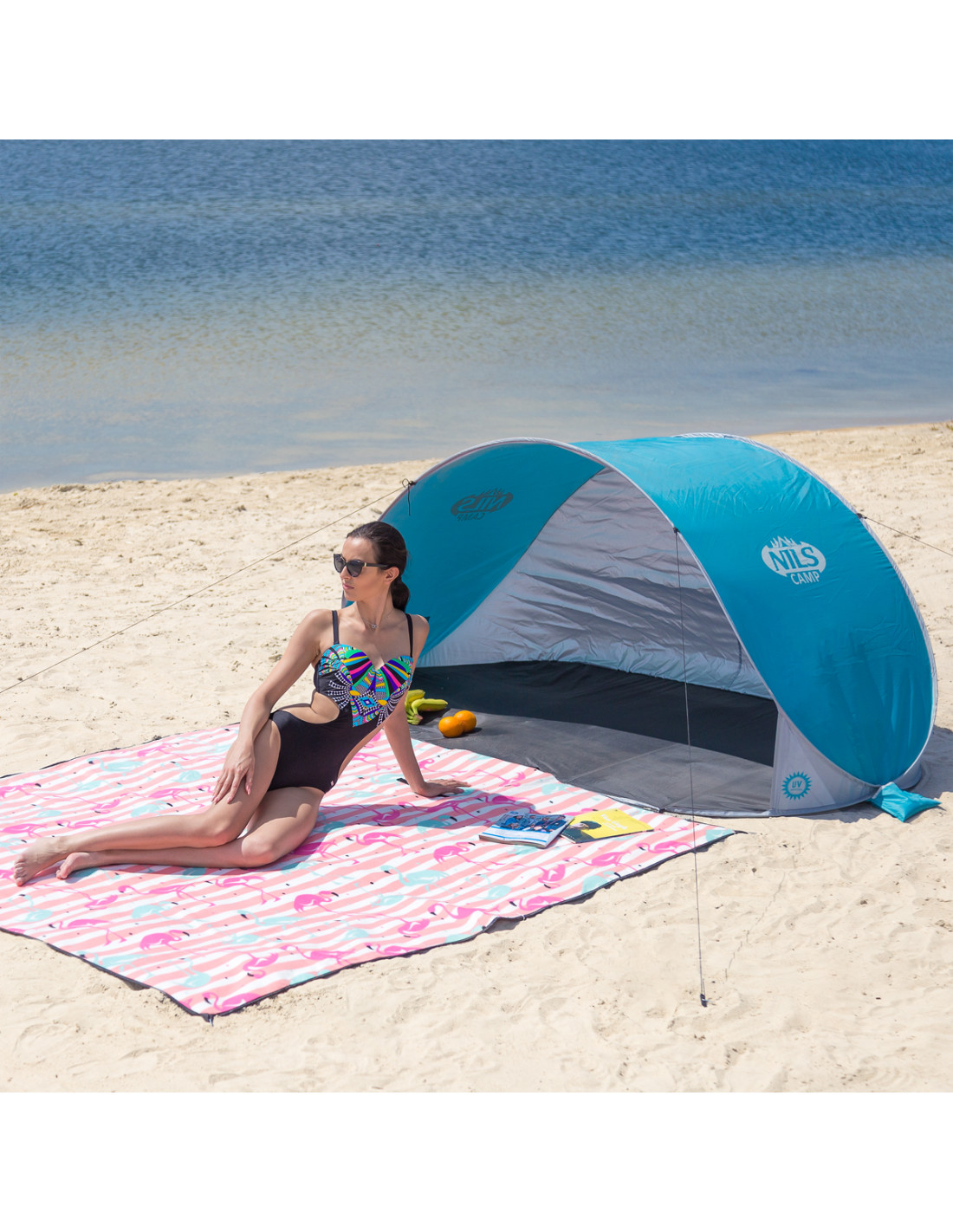 STRANDZELT SELBSTAUFBAUEND TÜRKISFARBIG-GRAU BODEN NILS CAMP