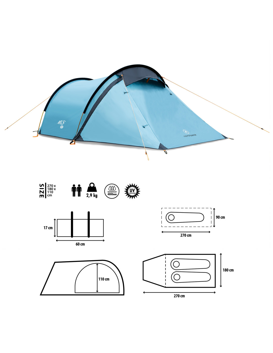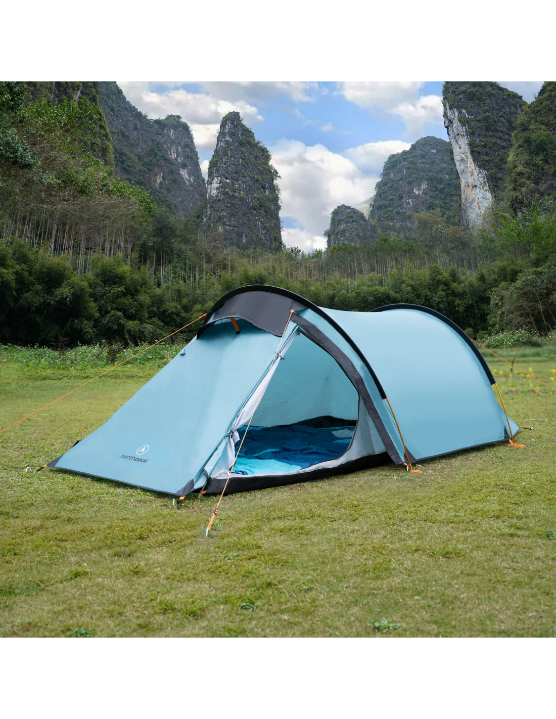 Das zweilagige Polyester-Material mit einer Wasserdichtigkeit von 3000mm und versiegelten Nähten bietet zuverlässigen Schutz vor ungünstigen Wetterbedingungen. Das innere, atmungsaktive Material sorgt für eine komfortable Luftzirkulation, während der Boden mit einer Wasserdichtigkeit von 4000mm Trockenheit und Komfort sicherstellt.