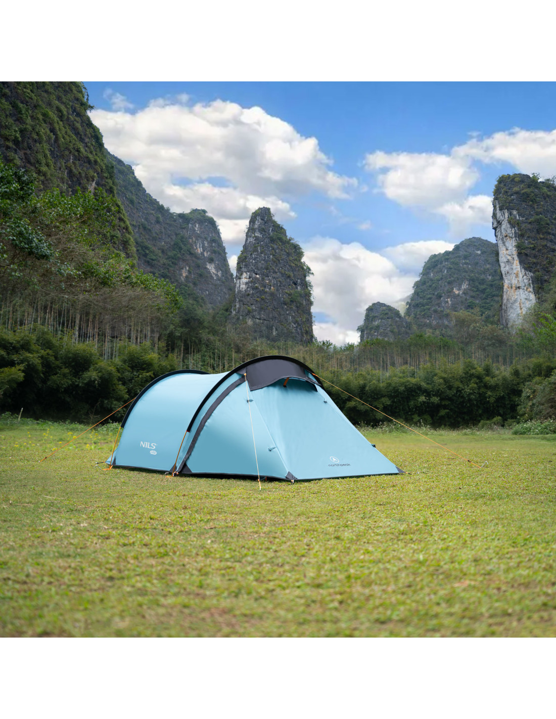 CAMPINGZELT NC6003 NORTH PEAK VON NILS CAMP - Ihre Enklave im Berggebiet. Bereiten Sie sich darauf vor, die Berge mit dem Zwei-Personen-Zelt NC6003 NORTH PEAK von NILS CAMP zu erobern, das entwickelt wurde, um den Herausforderungen von Bergexpeditionen zu begegnen. North Peak kombiniert Haltbarkeit und Innovation und wird so zur idealen Zuflucht für Reisende und Trekker, die Schnelligkeit, Leistung und Sicherheit schätzen.