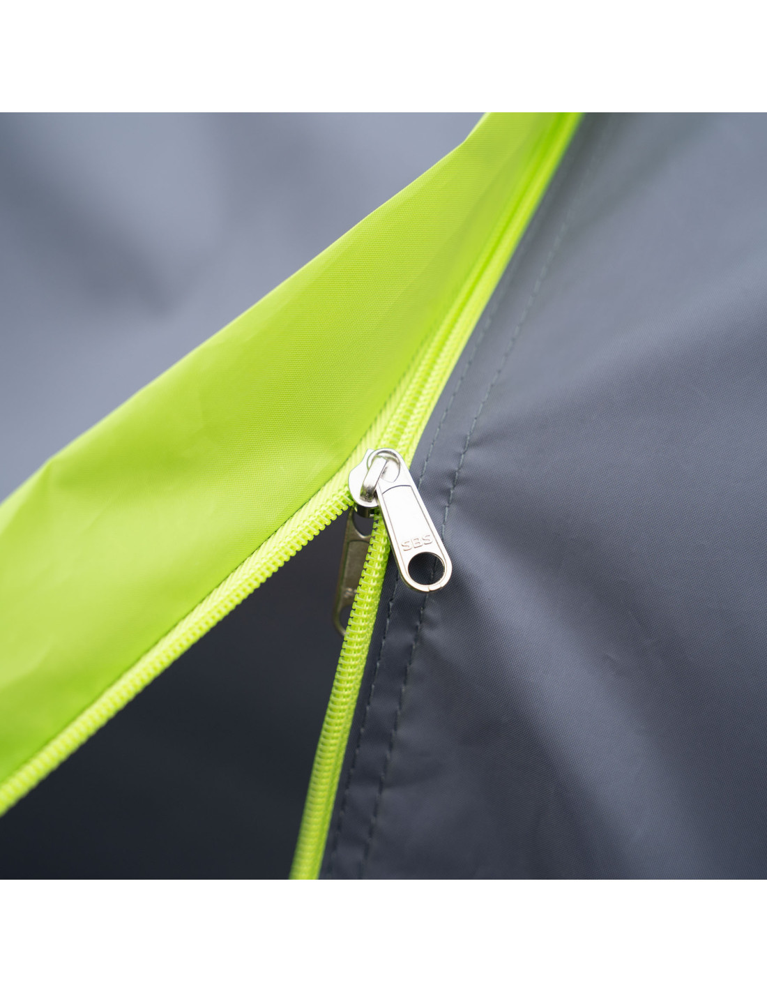Das zweilagige Polyester-Material mit einer Wasserdichtigkeit von 2000mm und versiegelten Nähten bietet zuverlässigen Schutz vor ungünstigen Wetterbedingungen. Das innere, atmungsaktive Material sorgt für eine komfortable Luftzirkulation, während der Boden mit einer Wasserdichtigkeit von 3000mm Trockenheit und Komfort gewährleistet.