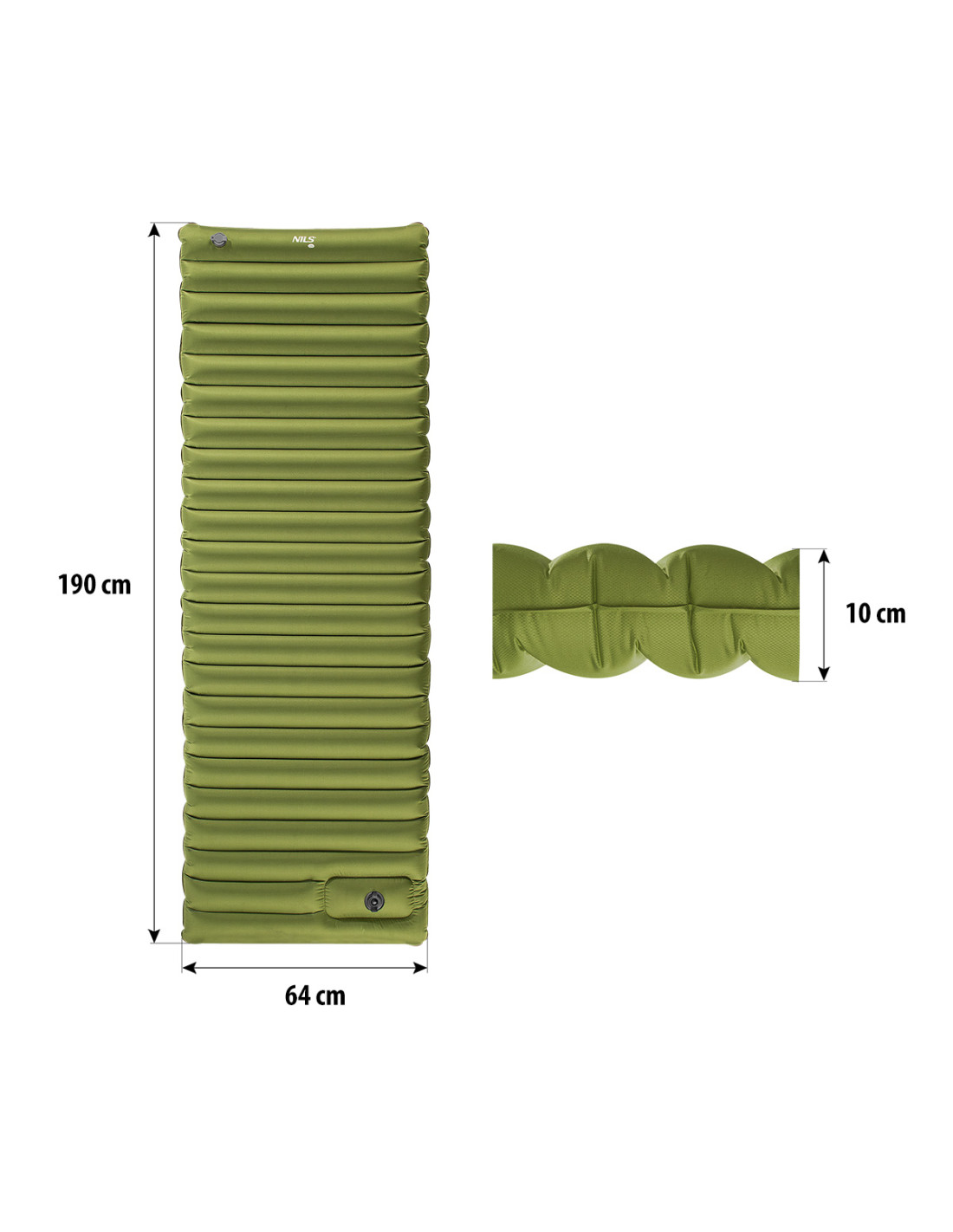 Die Matte hat eine eingebaute Fußpumpe, die die Matte in sehr kurzer Zeit aufpumpt. Sie müssen nur die Matte auf den Boden legen, das schwarze Ventil öffnen und das graue Ventil schließen. Drücken Sie dann impulsiv mit dem Fuß auf die Oberfläche der Pumpe (in der Nähe des schwarzen Ventils). Die Bewegungen sollten schnell und kurz sein. Es dauert nur eine Minute, bis die Matte einsatzbereit ist! Wenn die Matte den richtigen Füllstand erreicht hat, schließen Sie das schwarze Ventil. Nach vollständigem Aufpumpen erreicht die NC4101 eine beeindruckende Dicke von 10 cm, was eine Garantie für komfortable Entspannung und Schlaf selbst für die anspruchsvollsten Benutzer bietet.