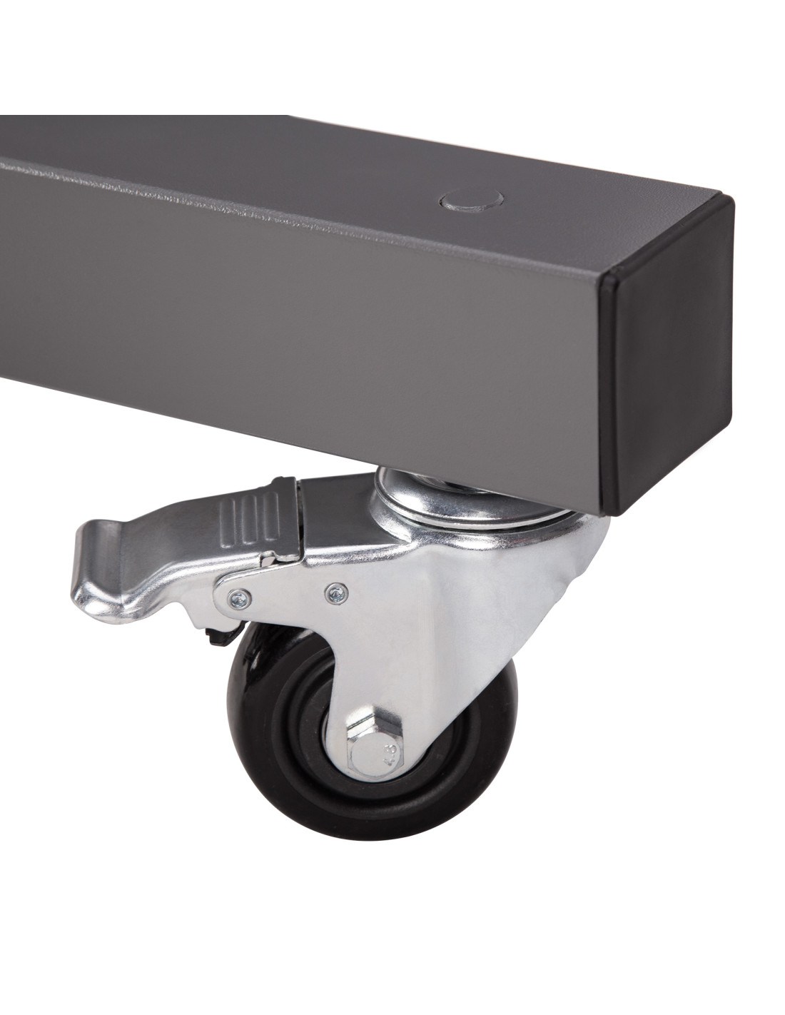 STR32 ist ein Ständer mit Transportrollen, die ermöglichen, ihn leicht und beliebig zu verschieben. Sie müssen sich keine Sorgen über die Stabilität und Sicherheit machen, weil die Transportrollen mit einer Bremse ausgestattet sind. Dies verhindert, dass sich der Ständer ohne Kontrolle bewegen wird. Der Ständer hat auch eine solide Konstruktion aus hochwertigem Stahl. Seine maximale Belastbarkeit ist 200 kg.