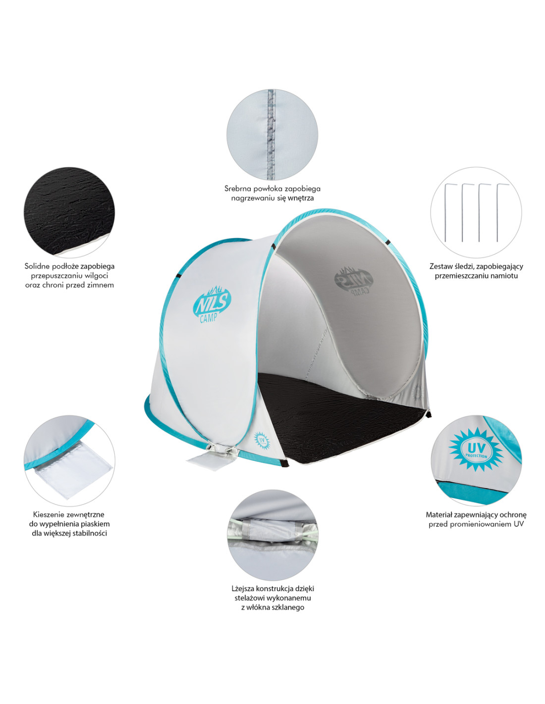 Eine der beliebtesten Formen der Sommererholung ist es, die Freizeit an einem Strand zu verbringen. Es ist gut, etwas mit sich zu haben, um sich vor den Sonnenstrahlen zu entspannen, was einen Schatten wirft, und um sich gleichzeitig vor dem Wind zu schützen. Die beste Lösung ist ein Strandzelt, das leicht aufzuschlagen, robust und funktionell ist. So sind unsere originellen Zelte der Marke NILS CAMP. Wir stellen Ihnen das Modell NC3173 vor.