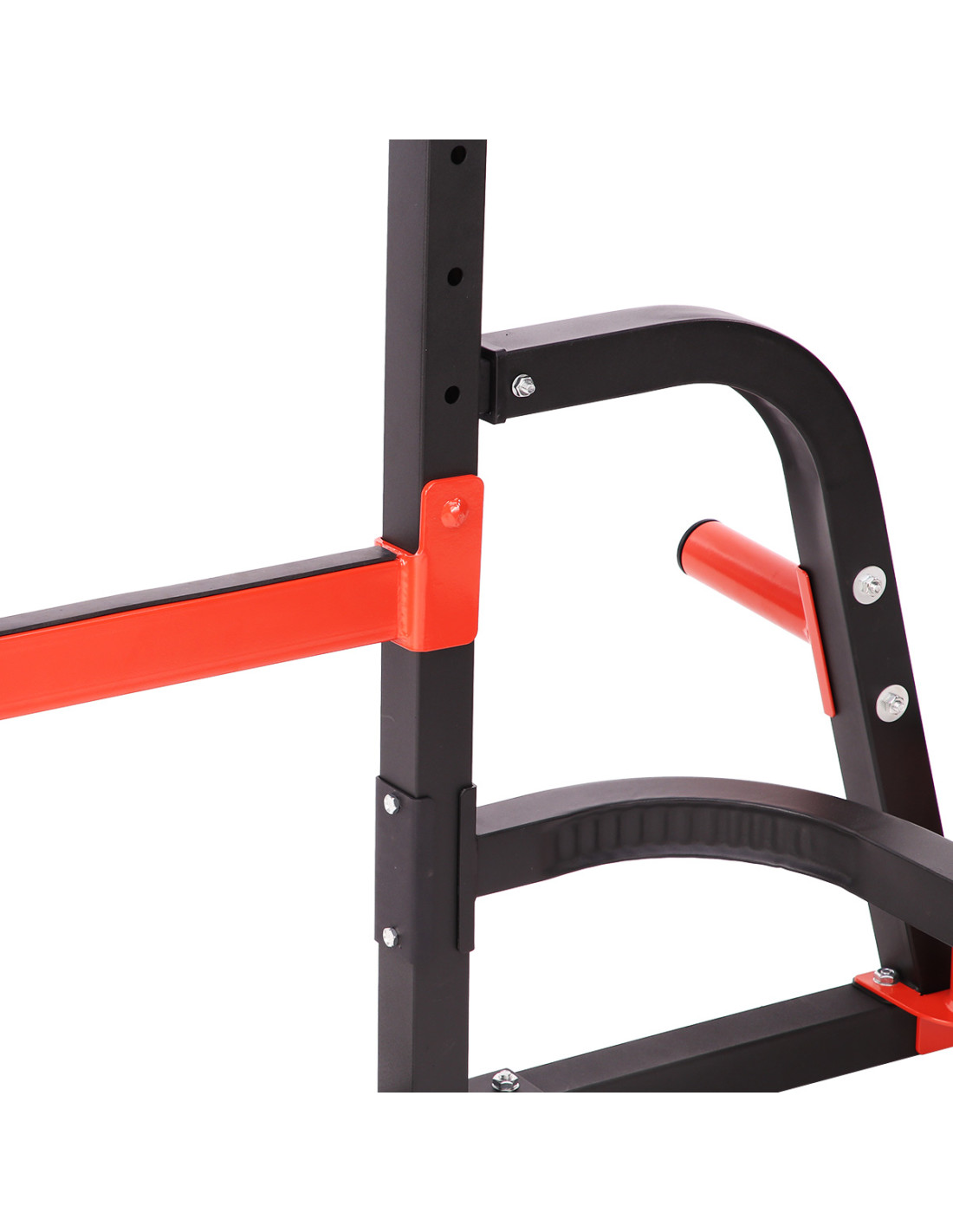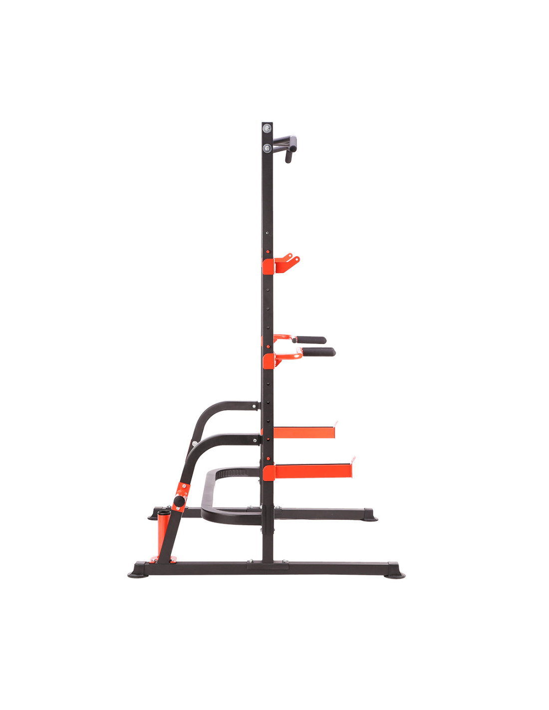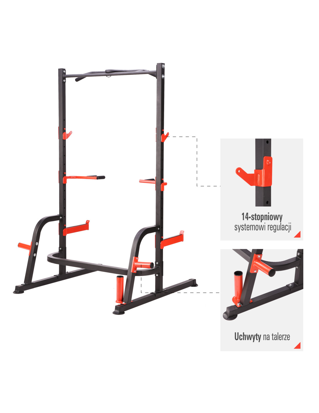 Dank dem benutzerfreundlichen 14-stufigen System der Höhenverstellung von Griffen, Dip-Station und Sicherheitshaken können Sie den Ständer an Ihre Bedürfnisse anpassen.