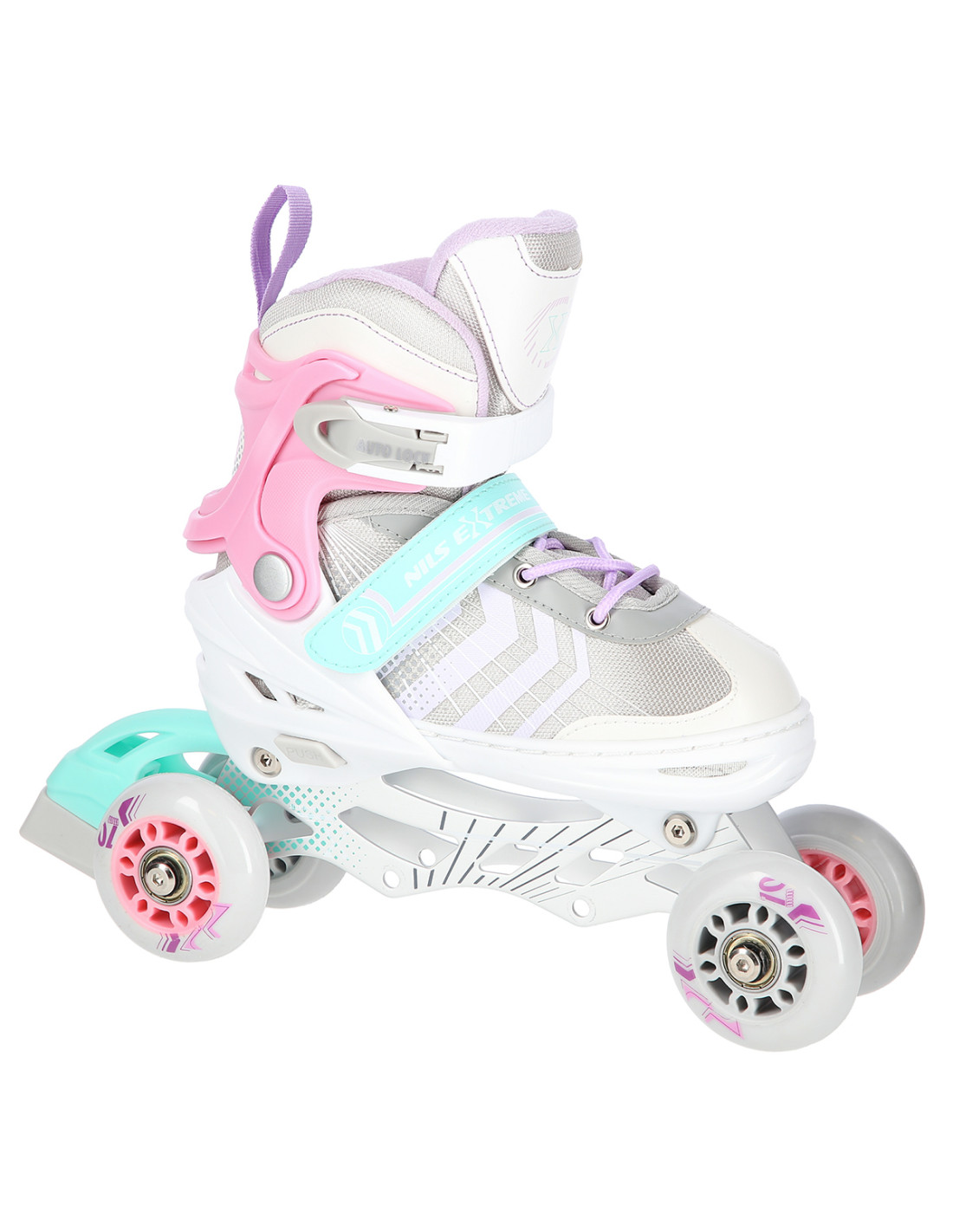 Das Produkt NH18192 steht für reine Freude. Mit der Möglichkeit der Verstellung einer zusätzlichen Rolle auf die Hinterachse können sich die Inliner funktional in Inliner-Rollschuhe verwandeln. Diese Lösung erleichtert den Jüngsten, die ersten Schritte im Inlineskating zu tun. Mit der Möglichkeit der Befestigung von einer zusätzlichen Rolle auf die Vorderachse kann das Produkt sich funktional in Rollschuhe verwandeln. Die Inliner sind mit einer speziellen Alu-Schiene und einer Bremse ausgestattet, die die Sicherheit während der Benutzung gewährleisten. Die Rollen der Klasse ABEC7 ermöglichen Ihnen einen geringeren Rollwiderstand und gleichzeitig können Sie schneller fahren.